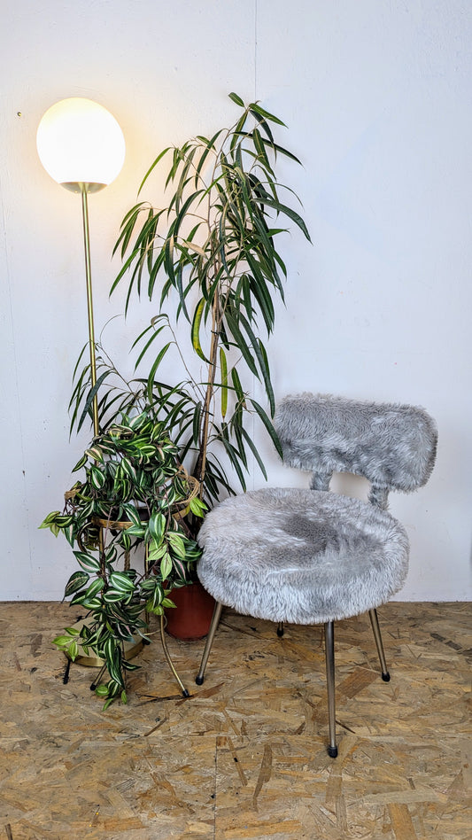 Chaise doudoune grise Marque Pelfran Edition Peltex Moumoute Années 60-70