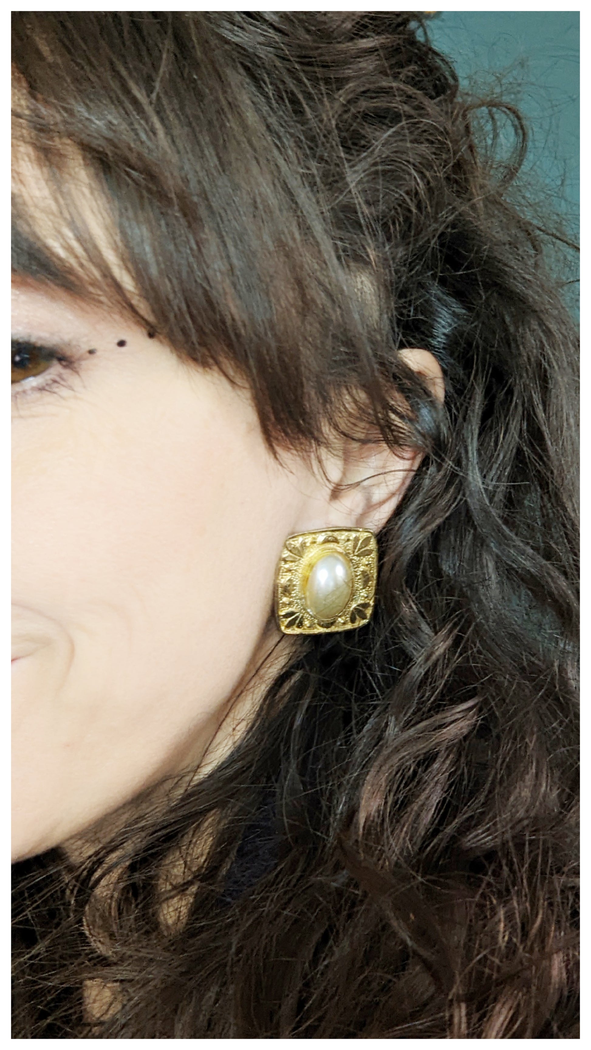 Boucles clips carrées avec perles 90s