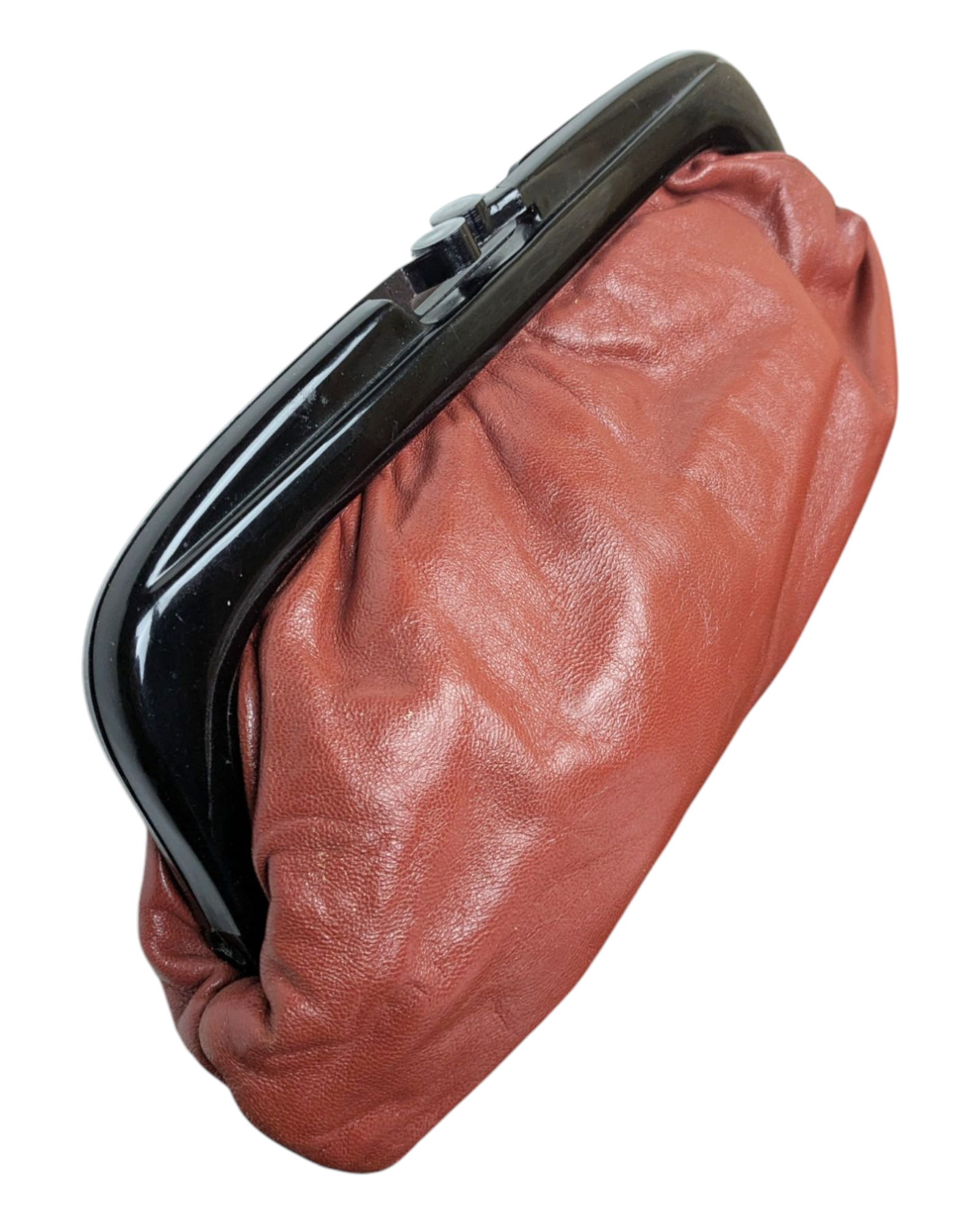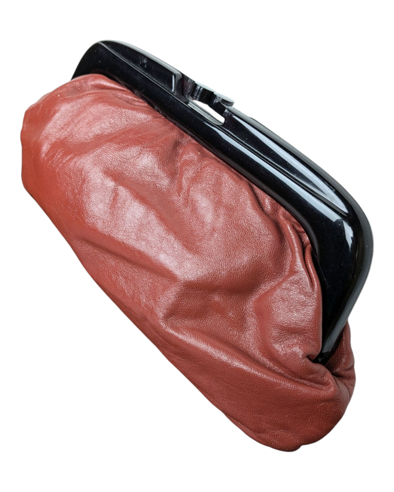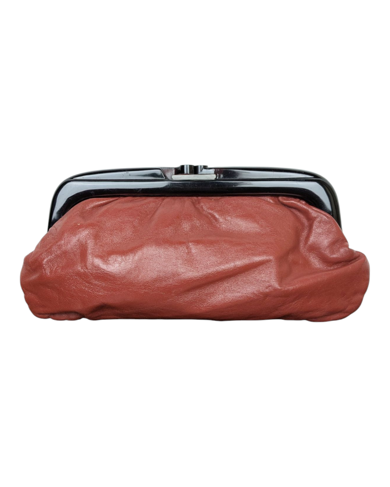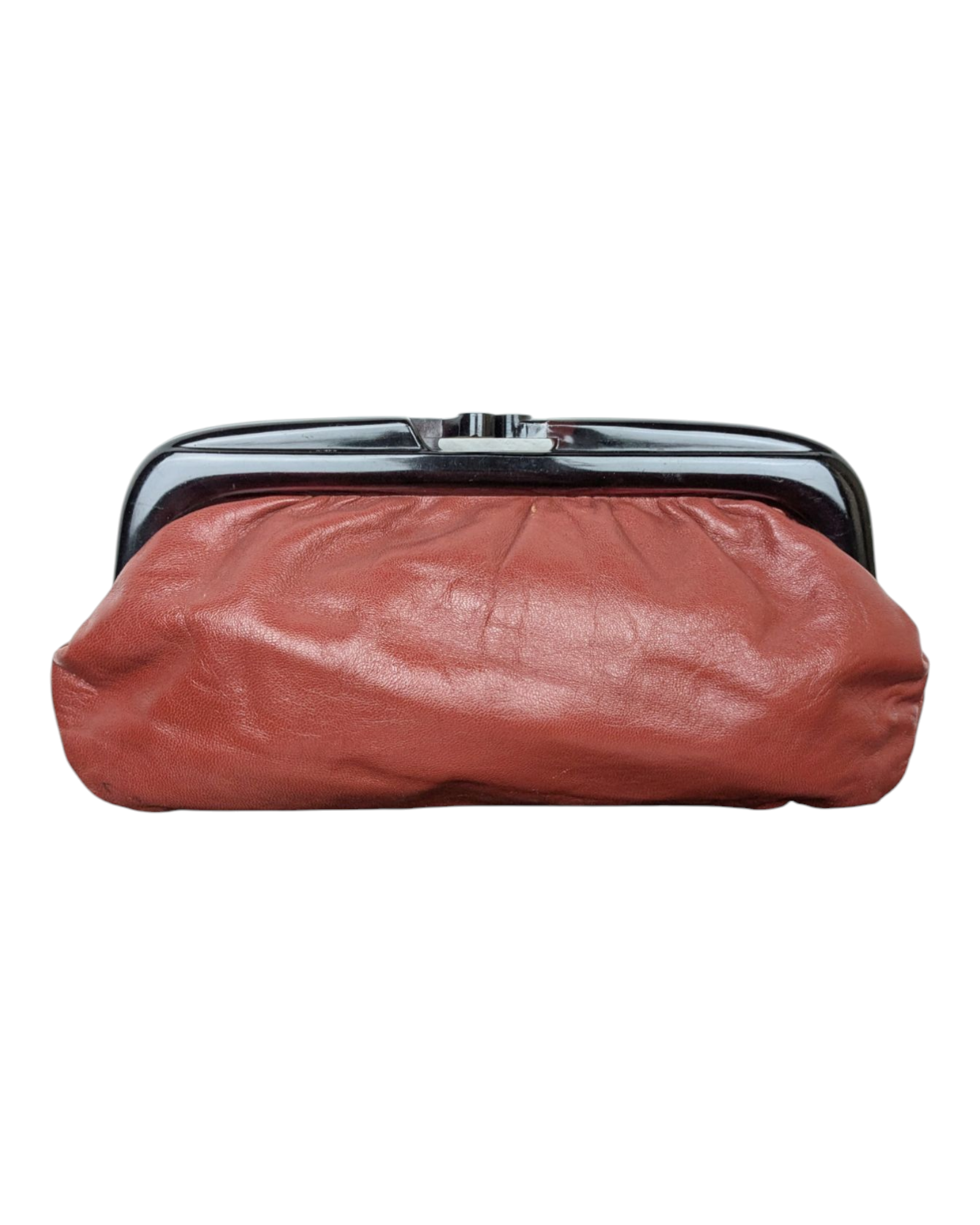 Pochette trousse cuir marron rouille fermeture marron Vintage Authentique Années 70s