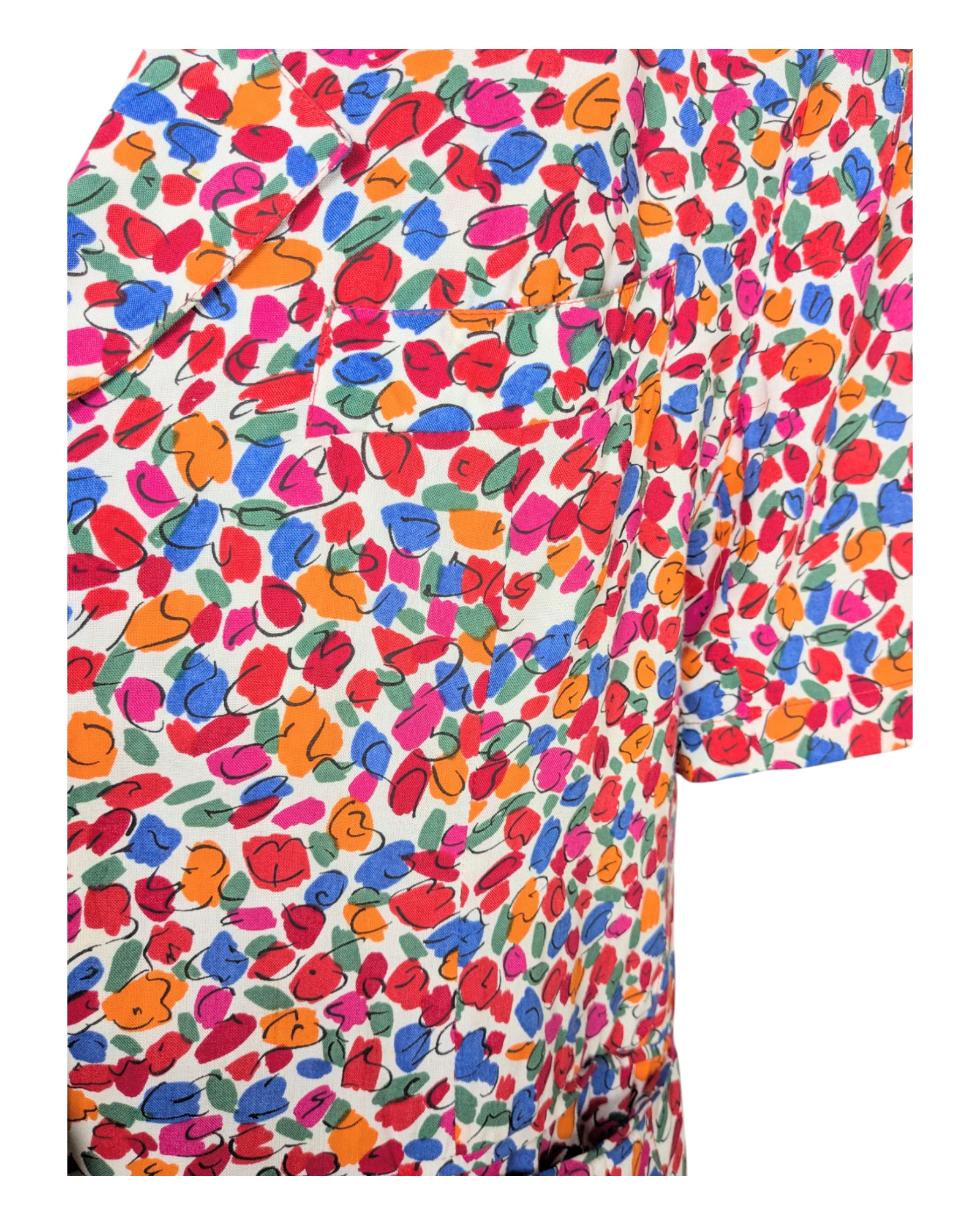 Dimensions à plat : 44 cm de carrure, 30 cm de longueur de manche, 51 cm de tour de poitrine, 46cm de tour de taille, 69 cm de long.