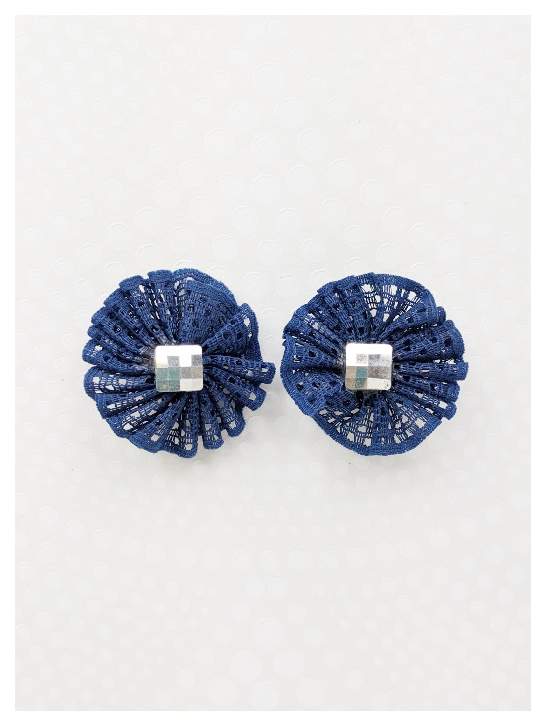 Boucles d'oreilles en dentelle bleu marine avec brillants carré en plastique au milieu. Attaches "clips" en métal.