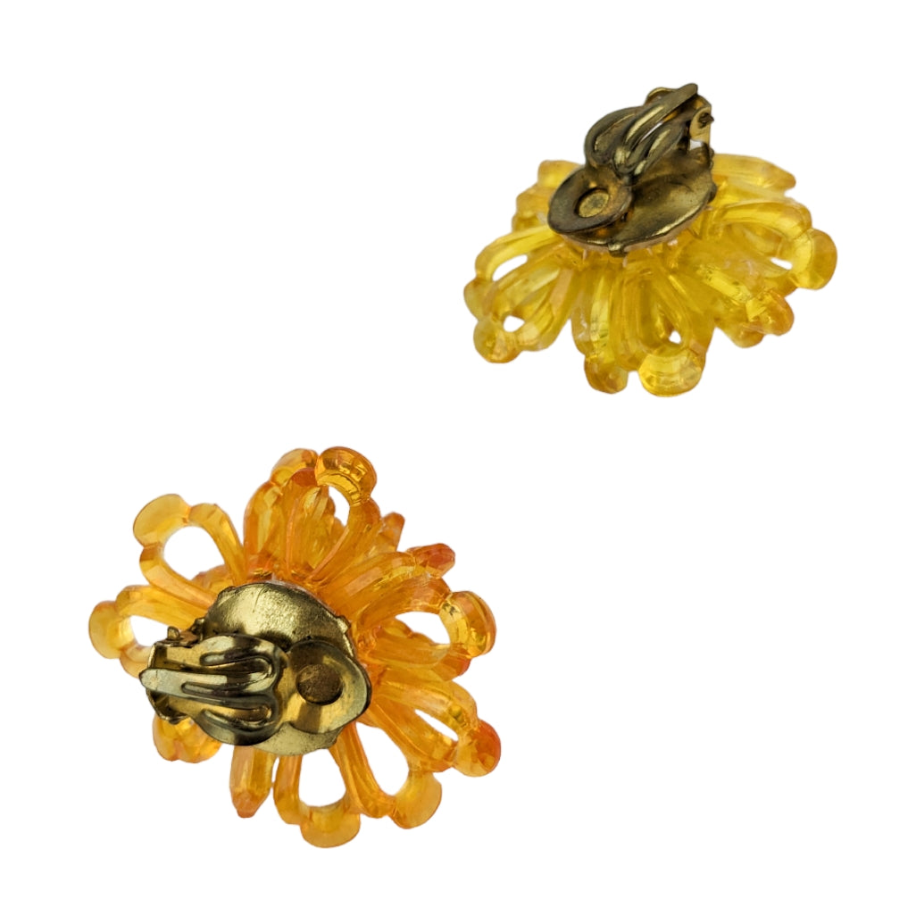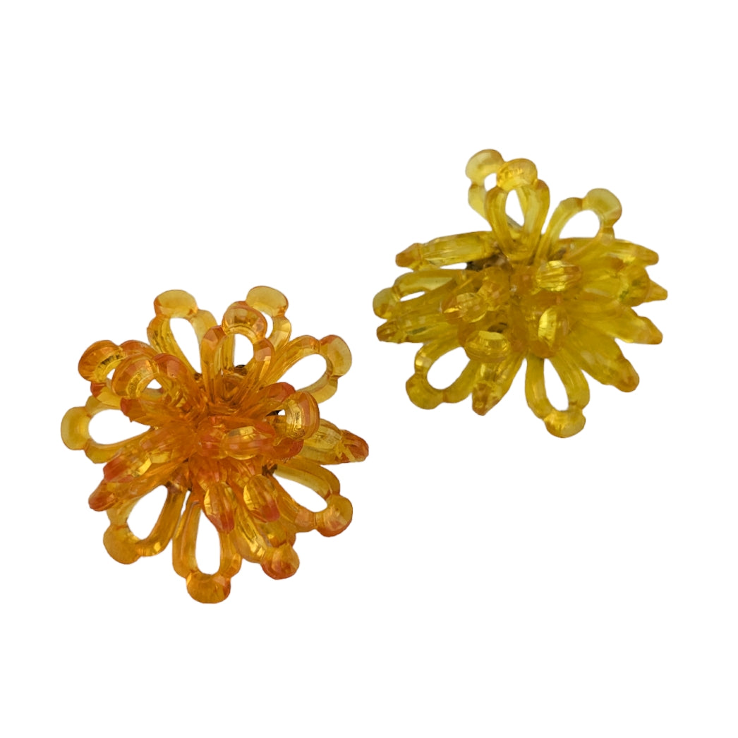 Boucles d'oreilles clips, en perles, forme de boucles. Bicolore orange et jaune.