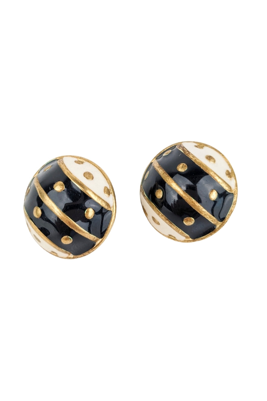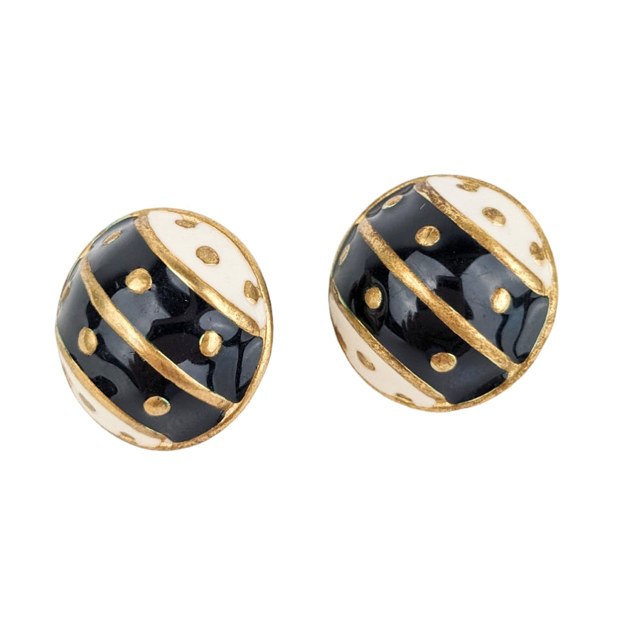 Boucles d'oreilles clips noir et blanc avec doré. Sphère.