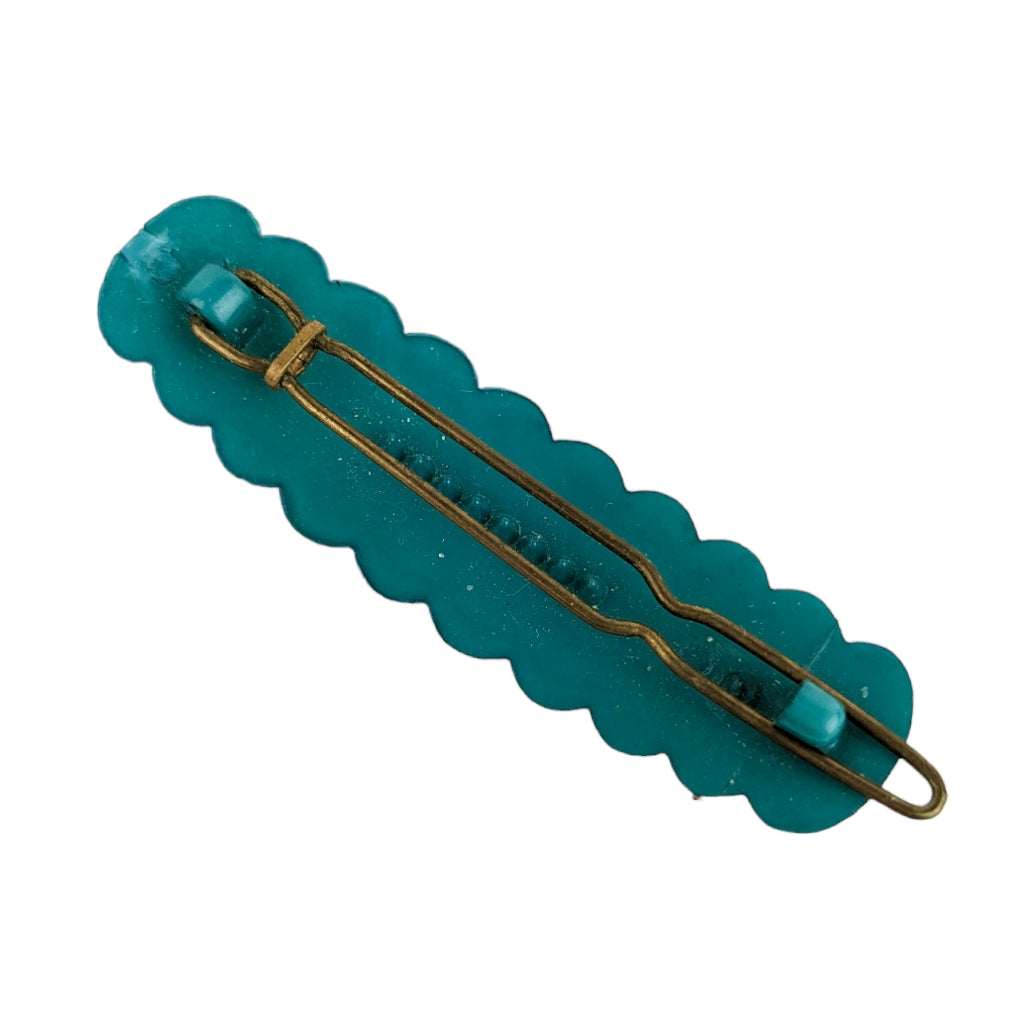 Jolie petite pince à cheveux en plastique turquoise, pince métalique à clip.