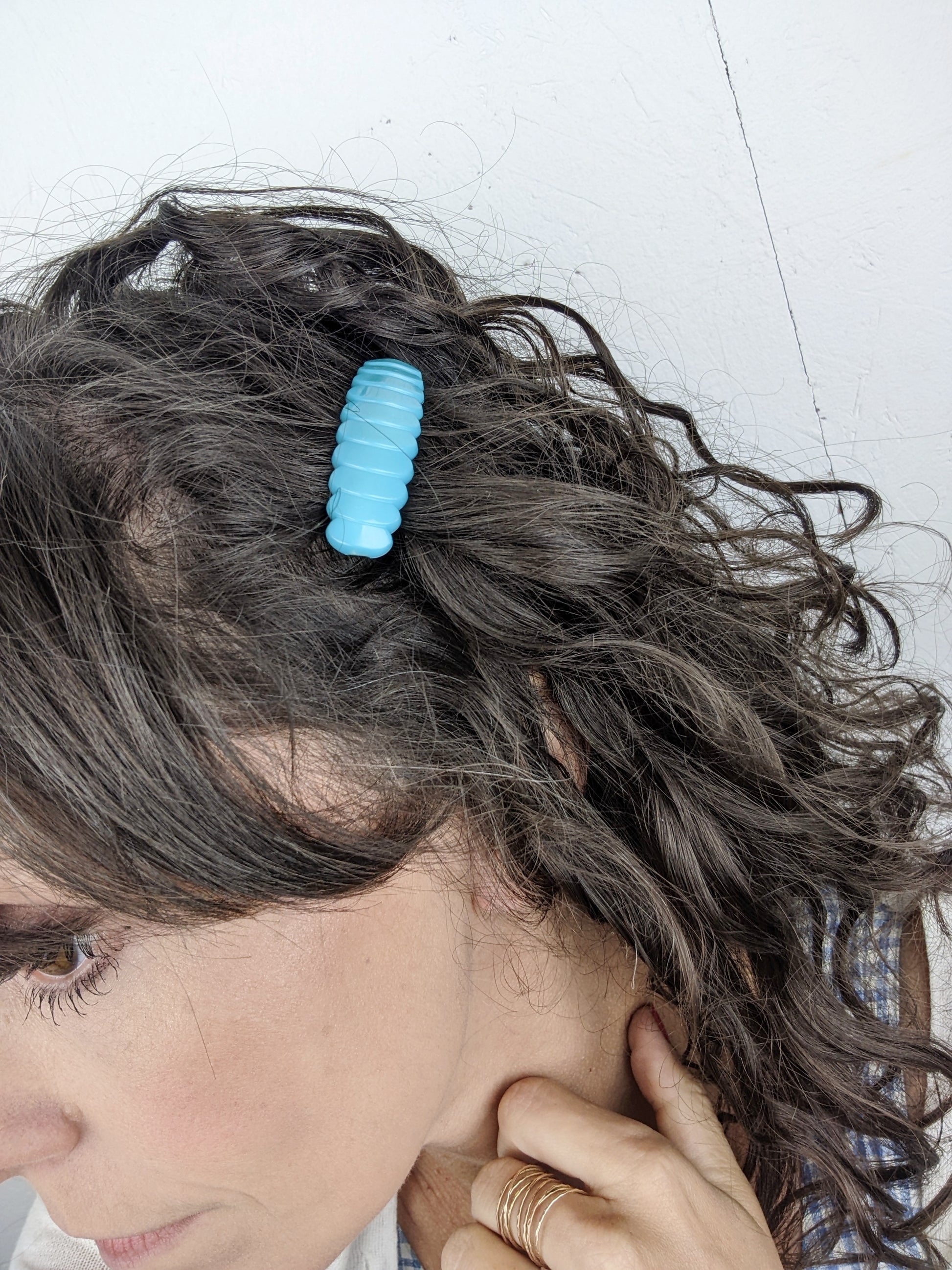 Jolie petite pince à cheveux en plastique bleu turquoise, pince métallique à clip.