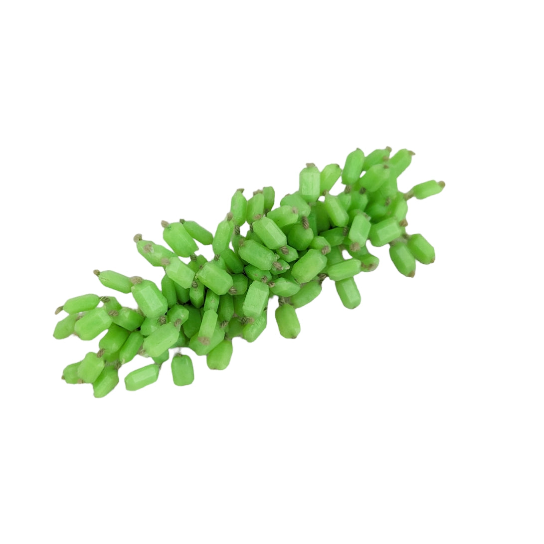 Pince à cheveux plate. Petites perles cylindres à facettes dans les tons vert fluo.