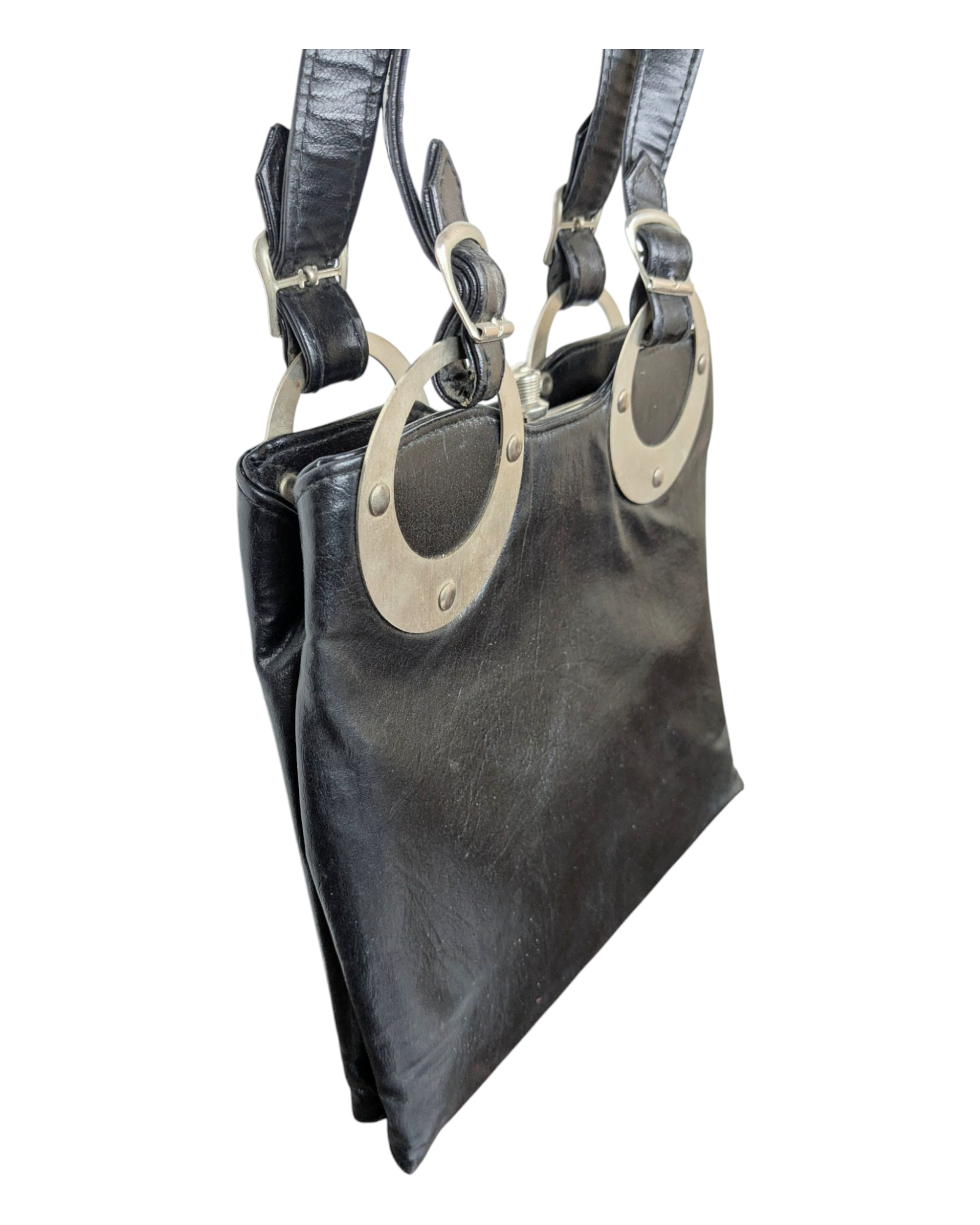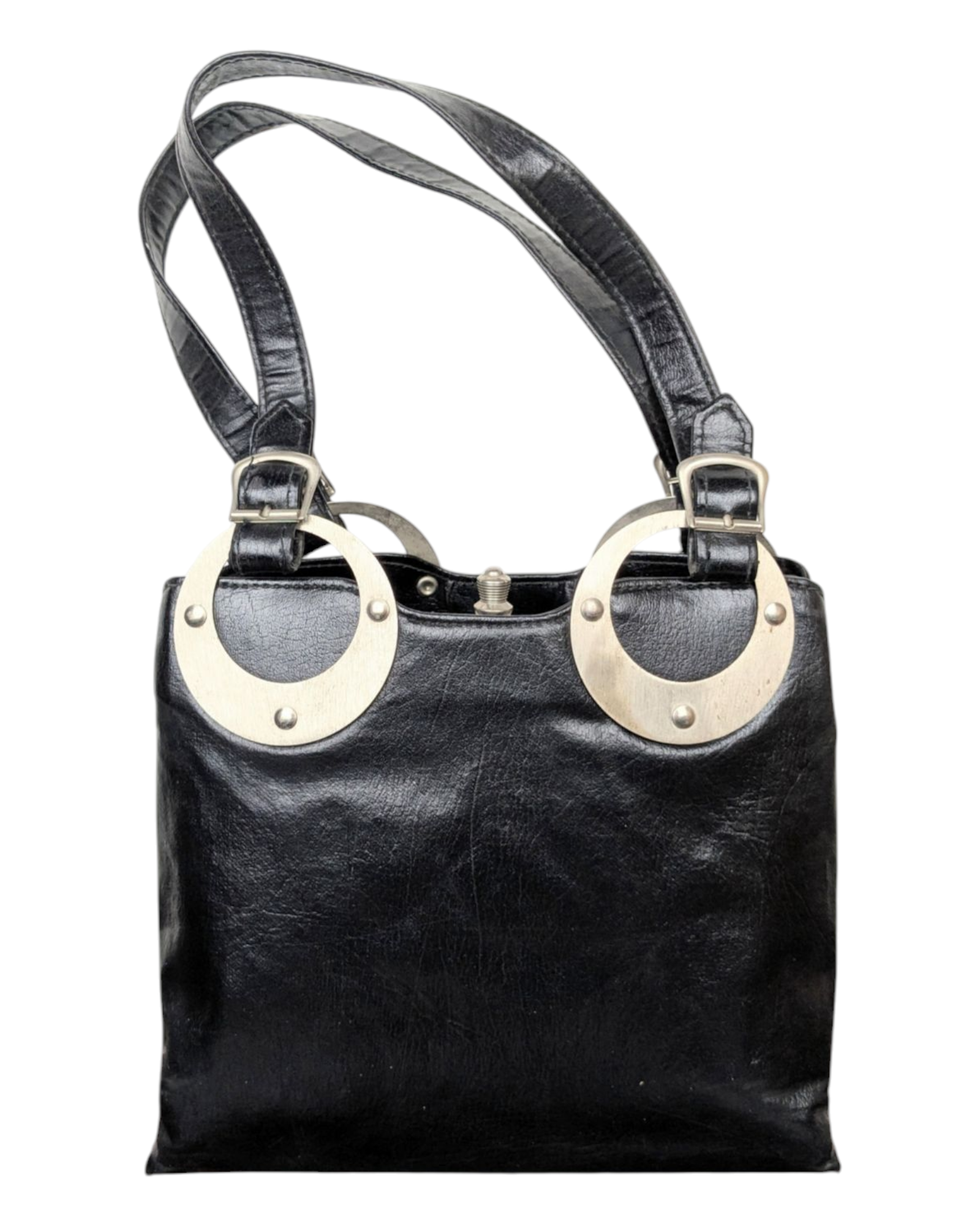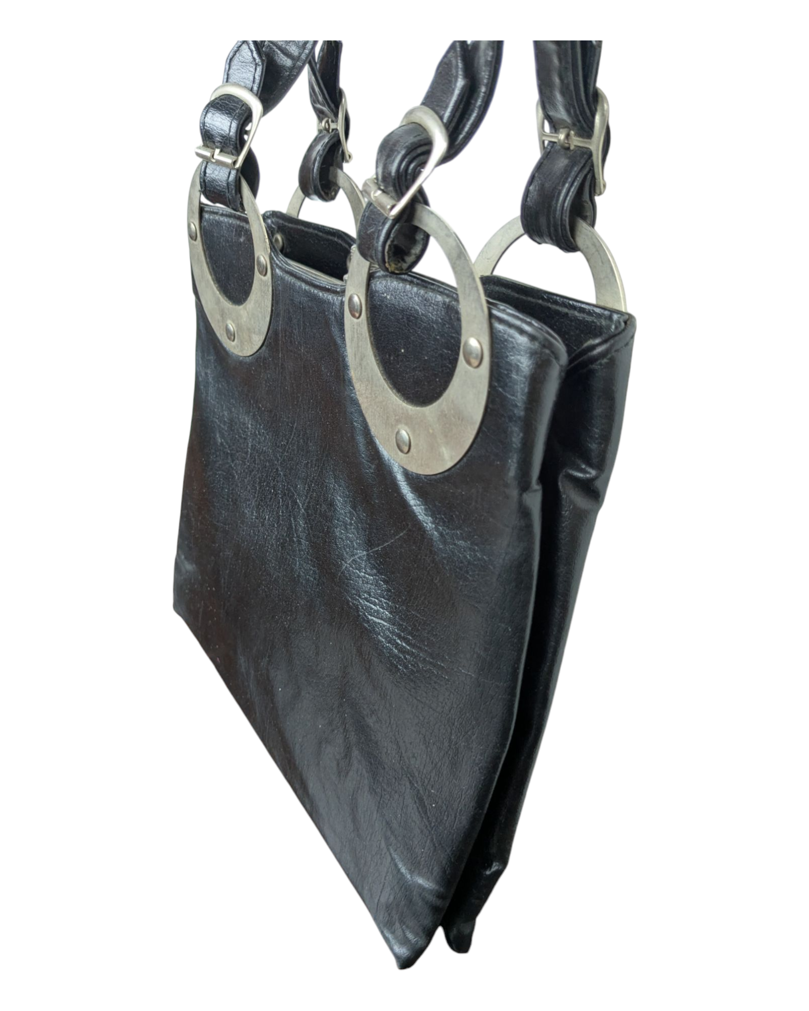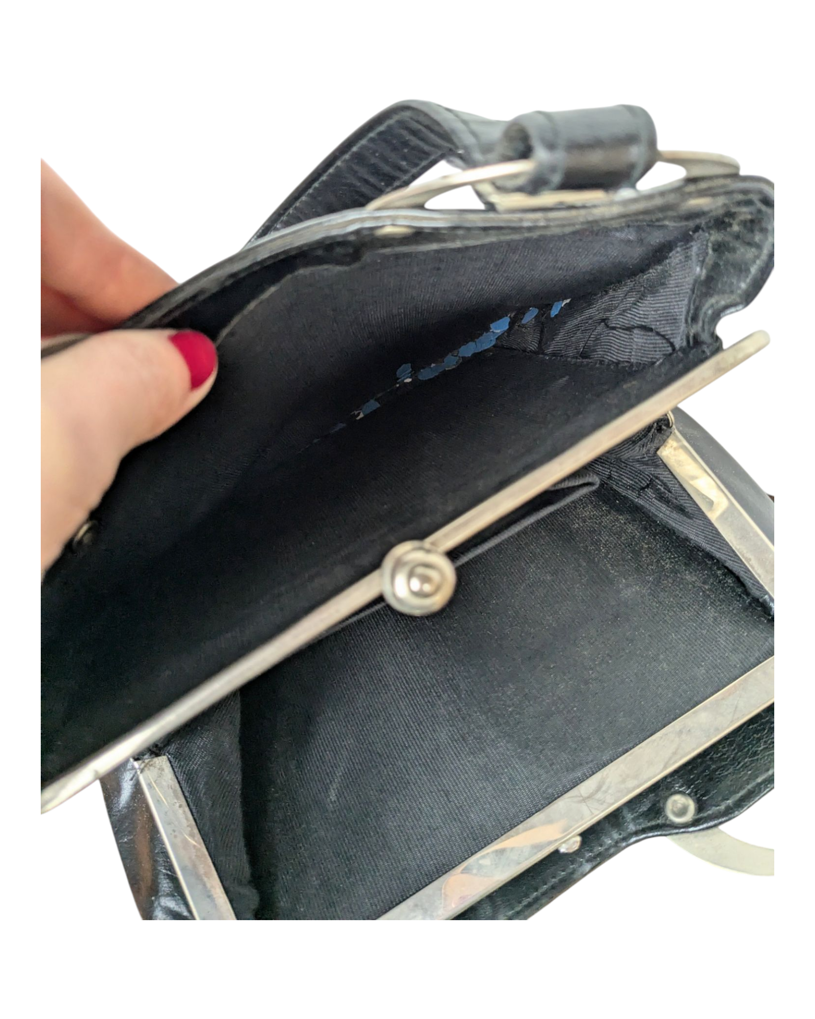 Superbe sac carré cuir noir argenté état impeccable Vintage authentique Années 60s