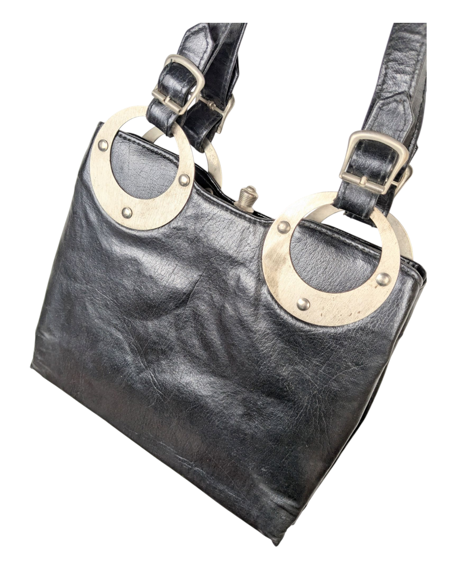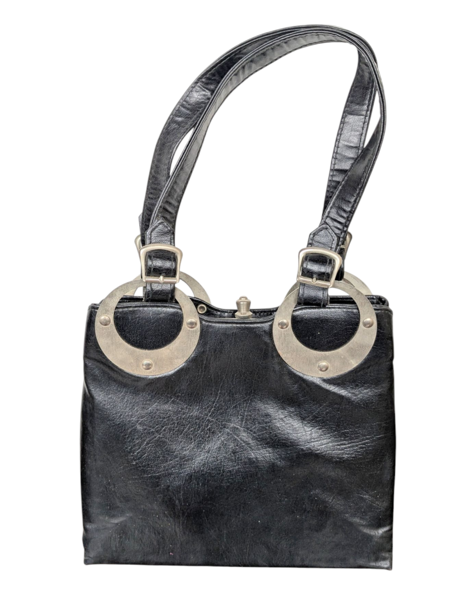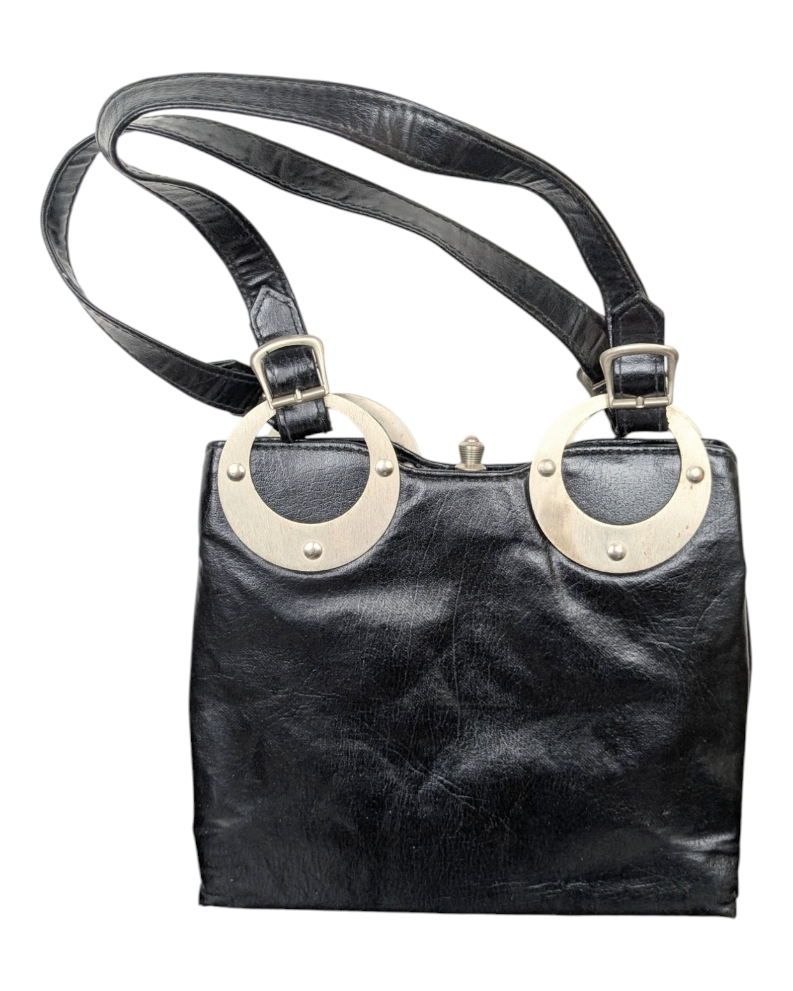 Superbe sac carré cuir noir argenté état impeccable Vintage authentique Années 60s