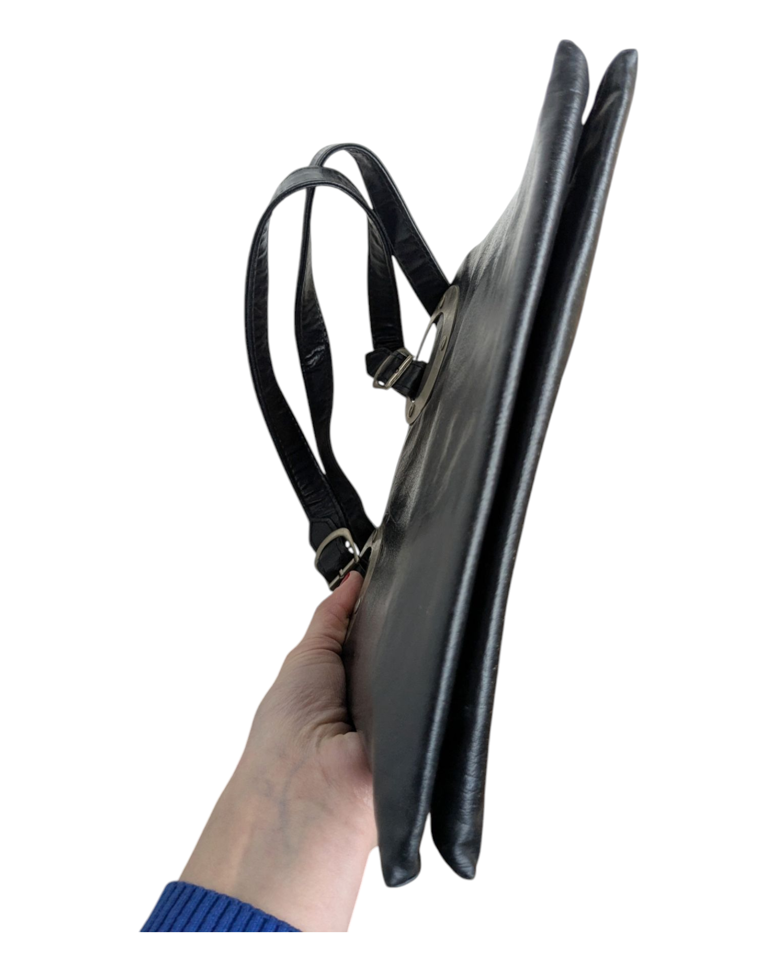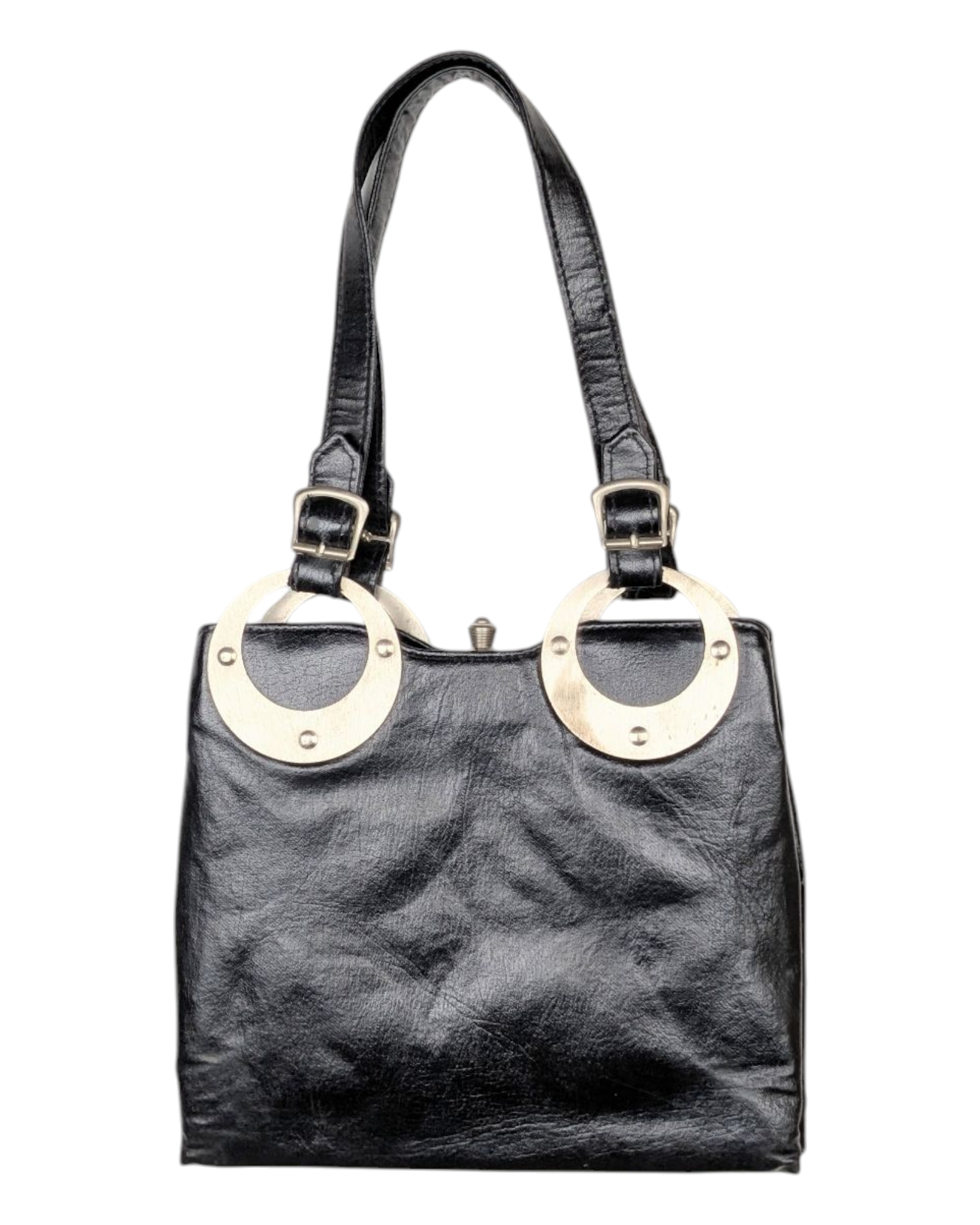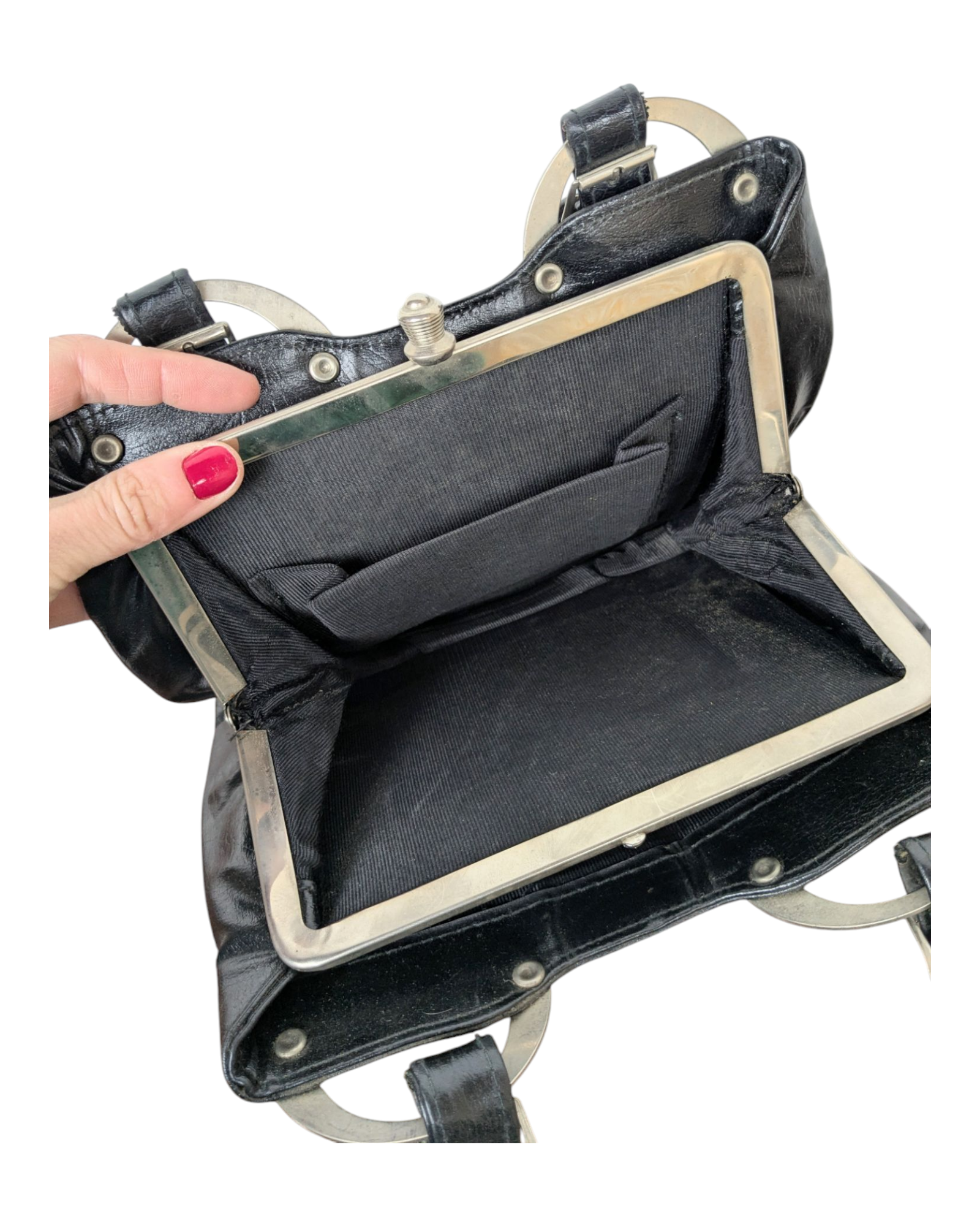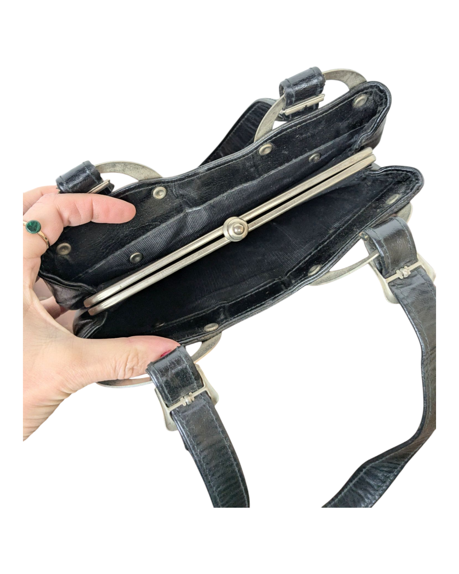 Superbe sac carré cuir noir argenté état impeccable Vintage authentique Années 60s