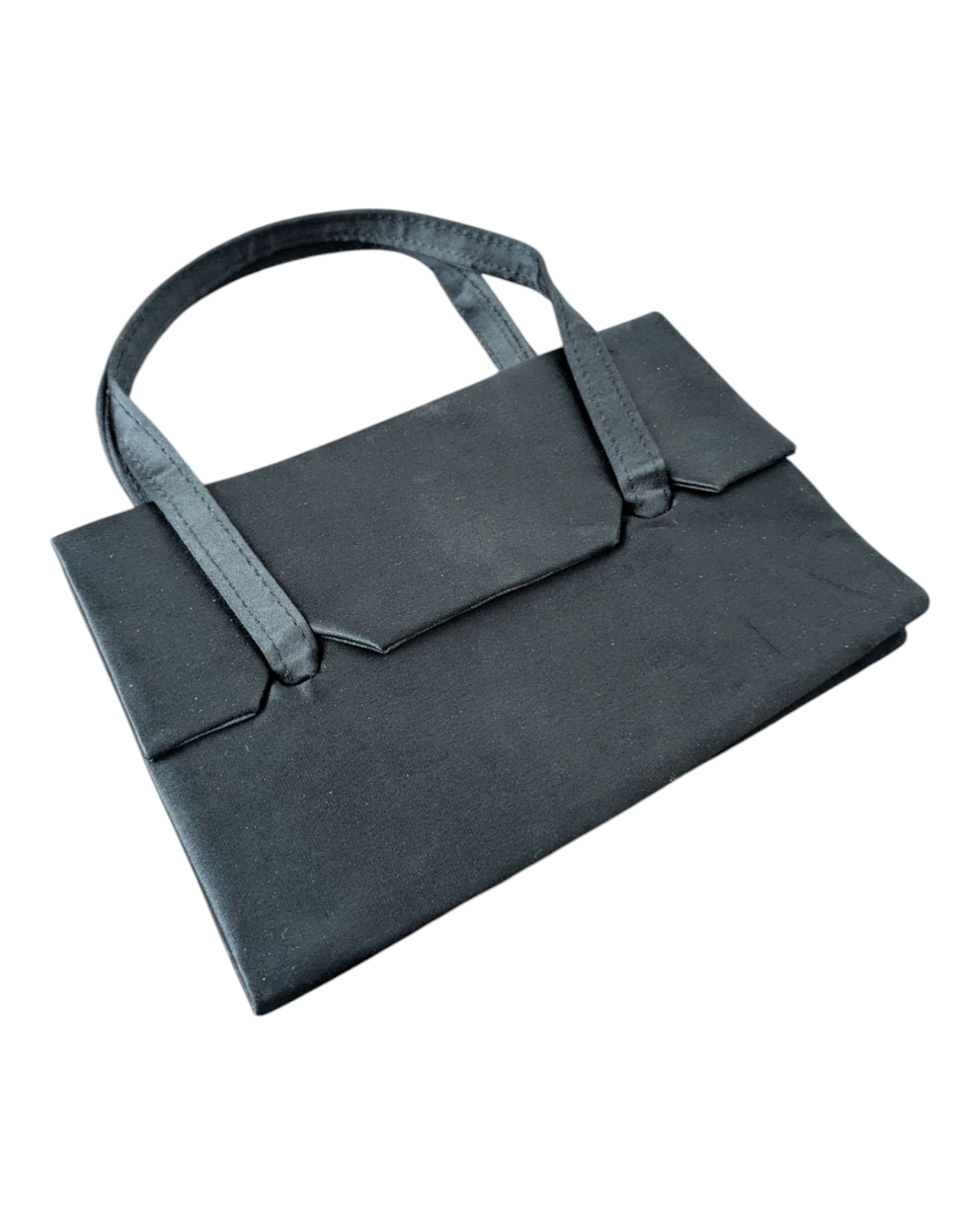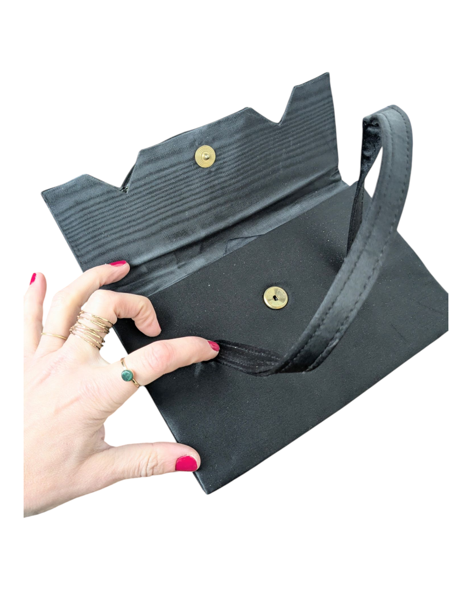 Jolie pochette en satin noir avec hanses Vintage authentique Années 70s