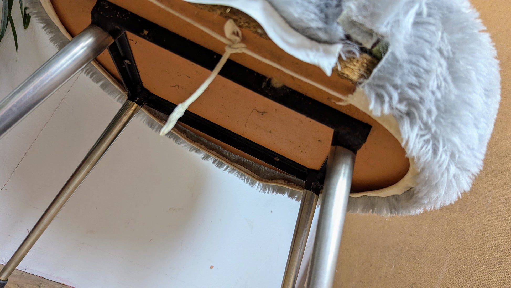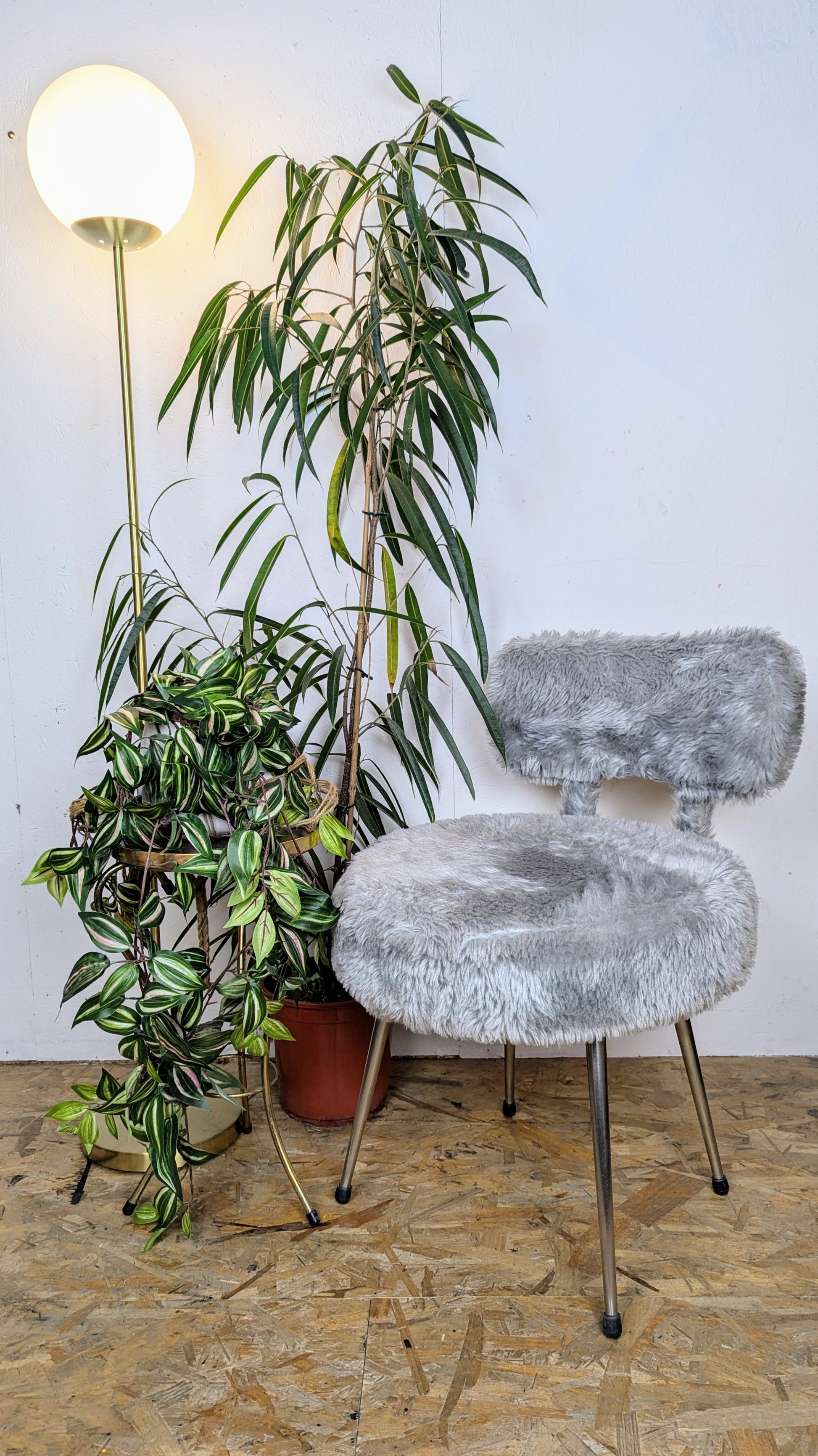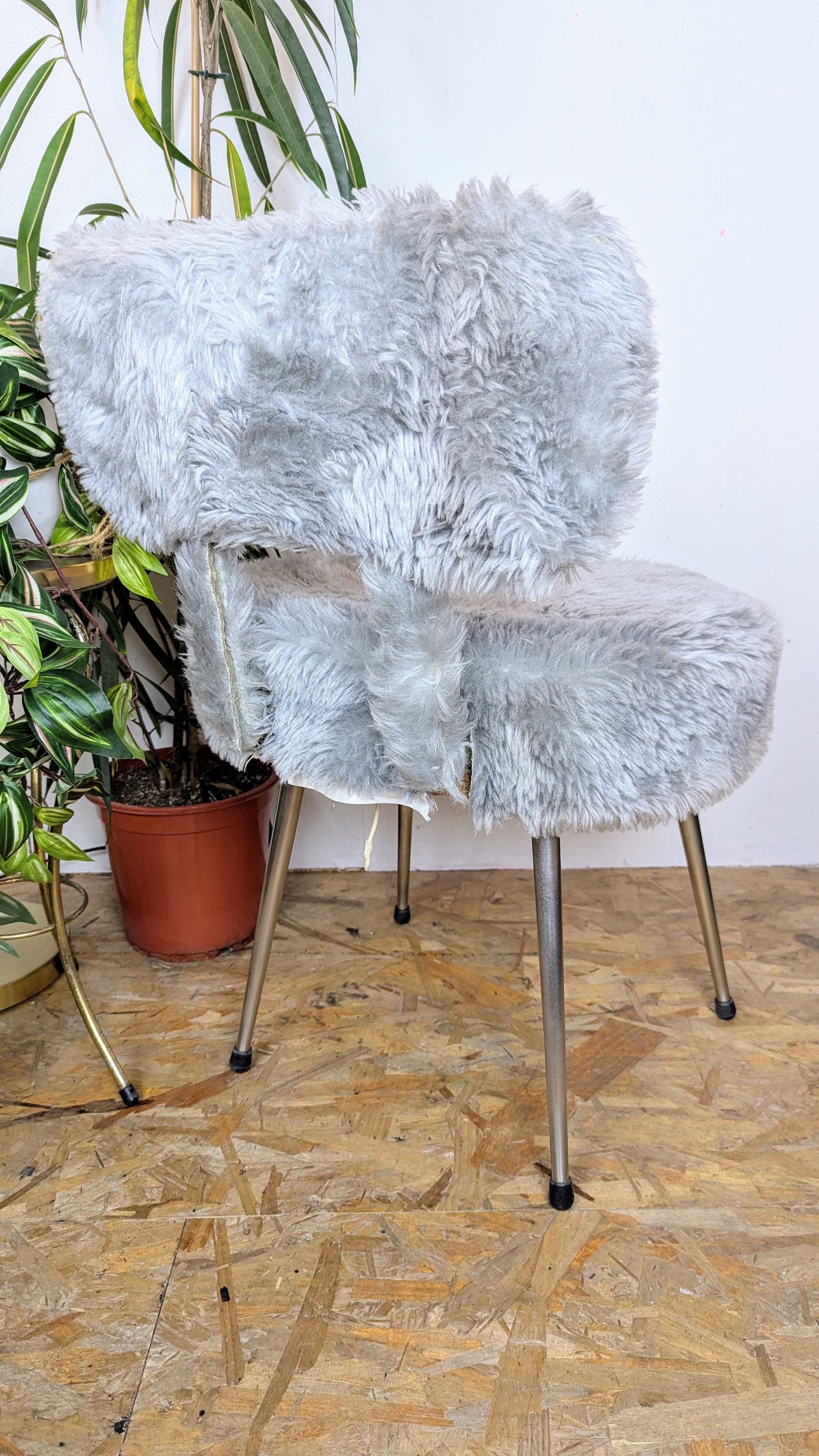 Chaise doudoune grise Marque Pelfran Edition Peltex Moumoute Années 60-70
