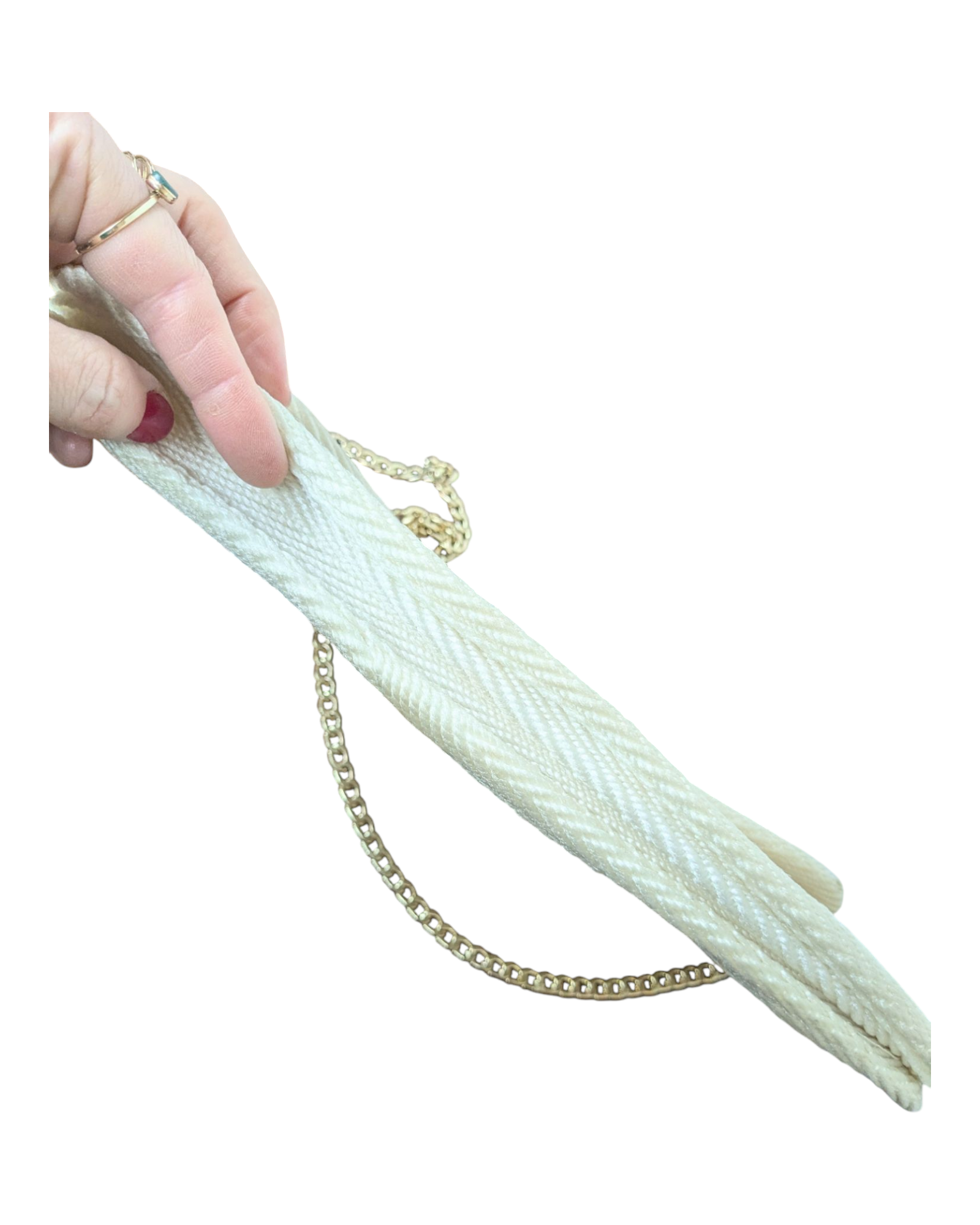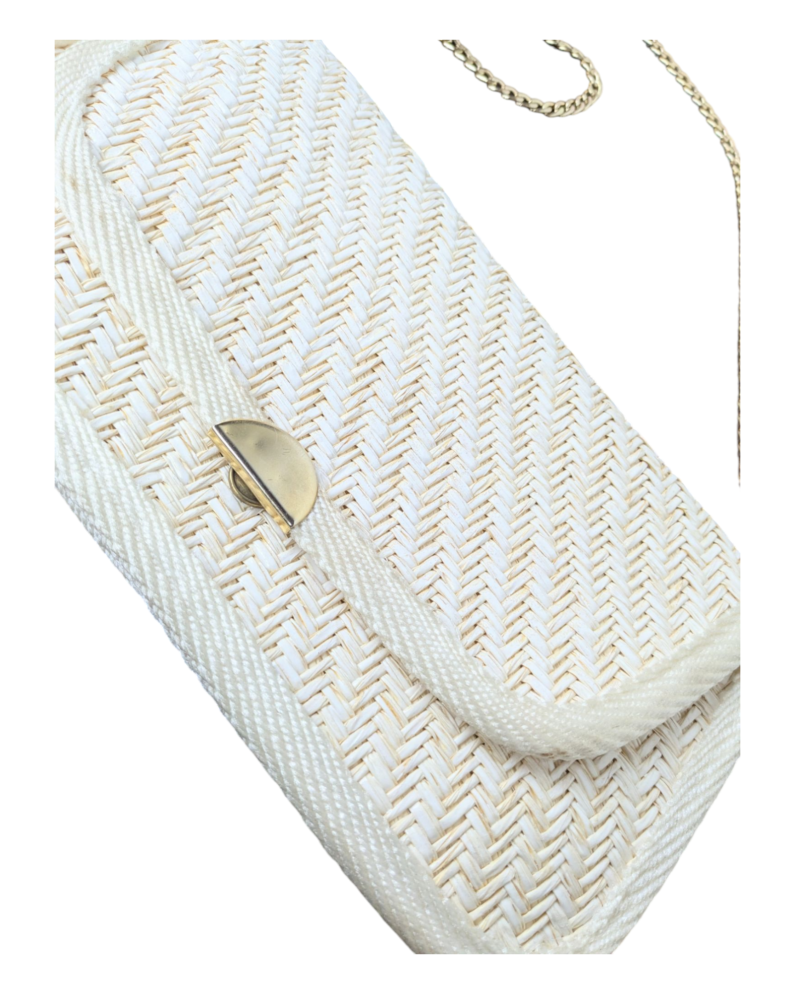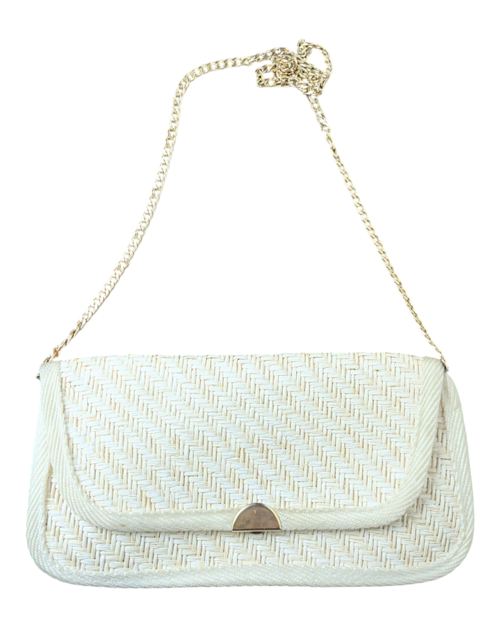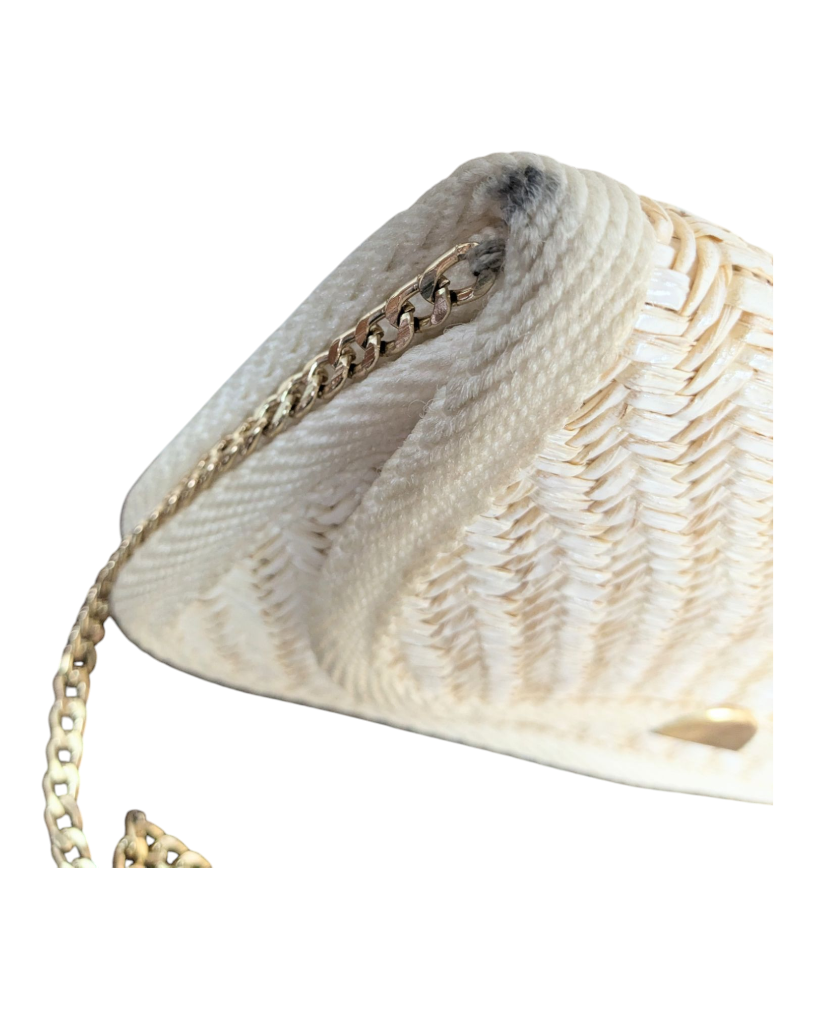 Sac en osier blanc tressé avec anse chaine dorée Vintage authentique Années 80s.