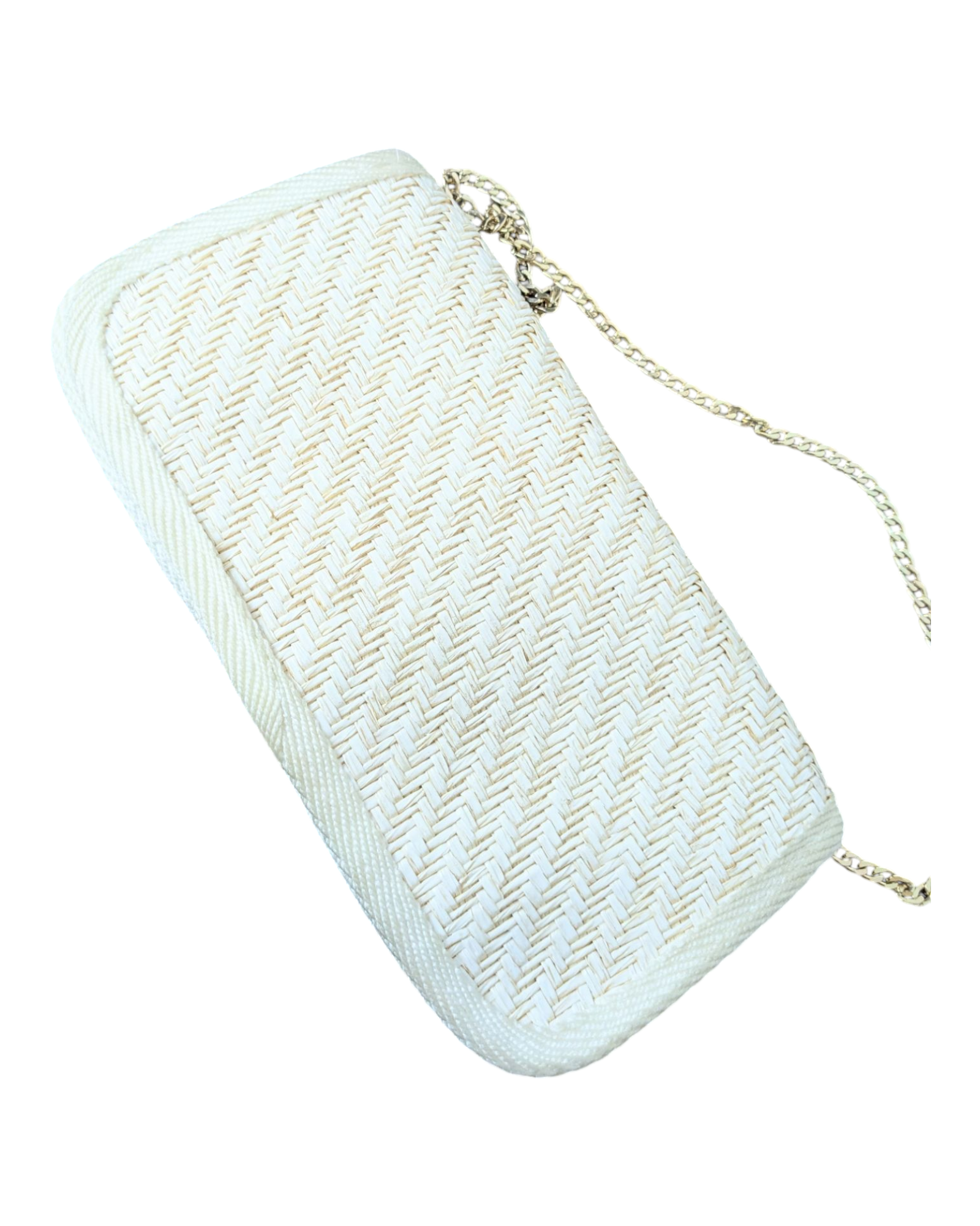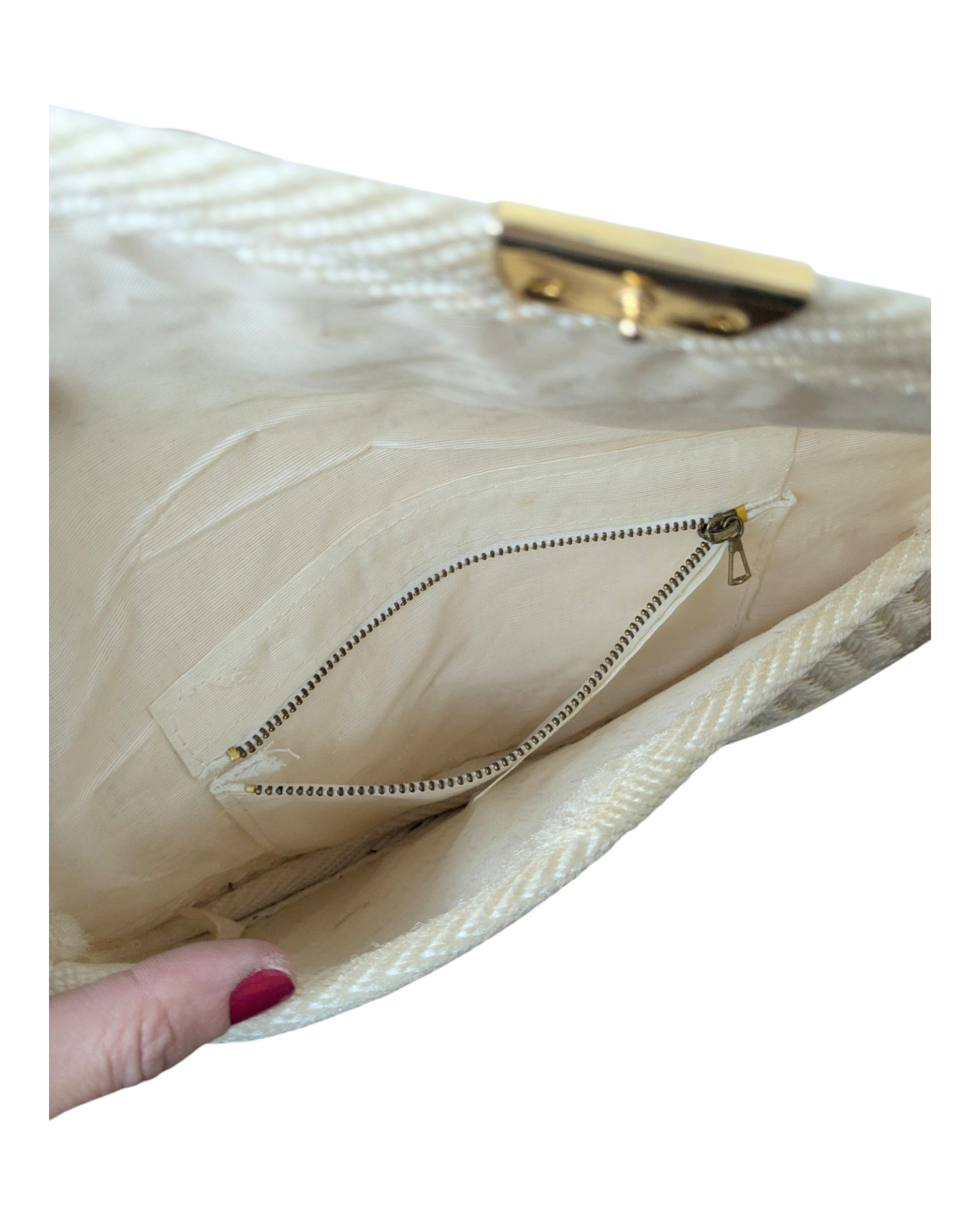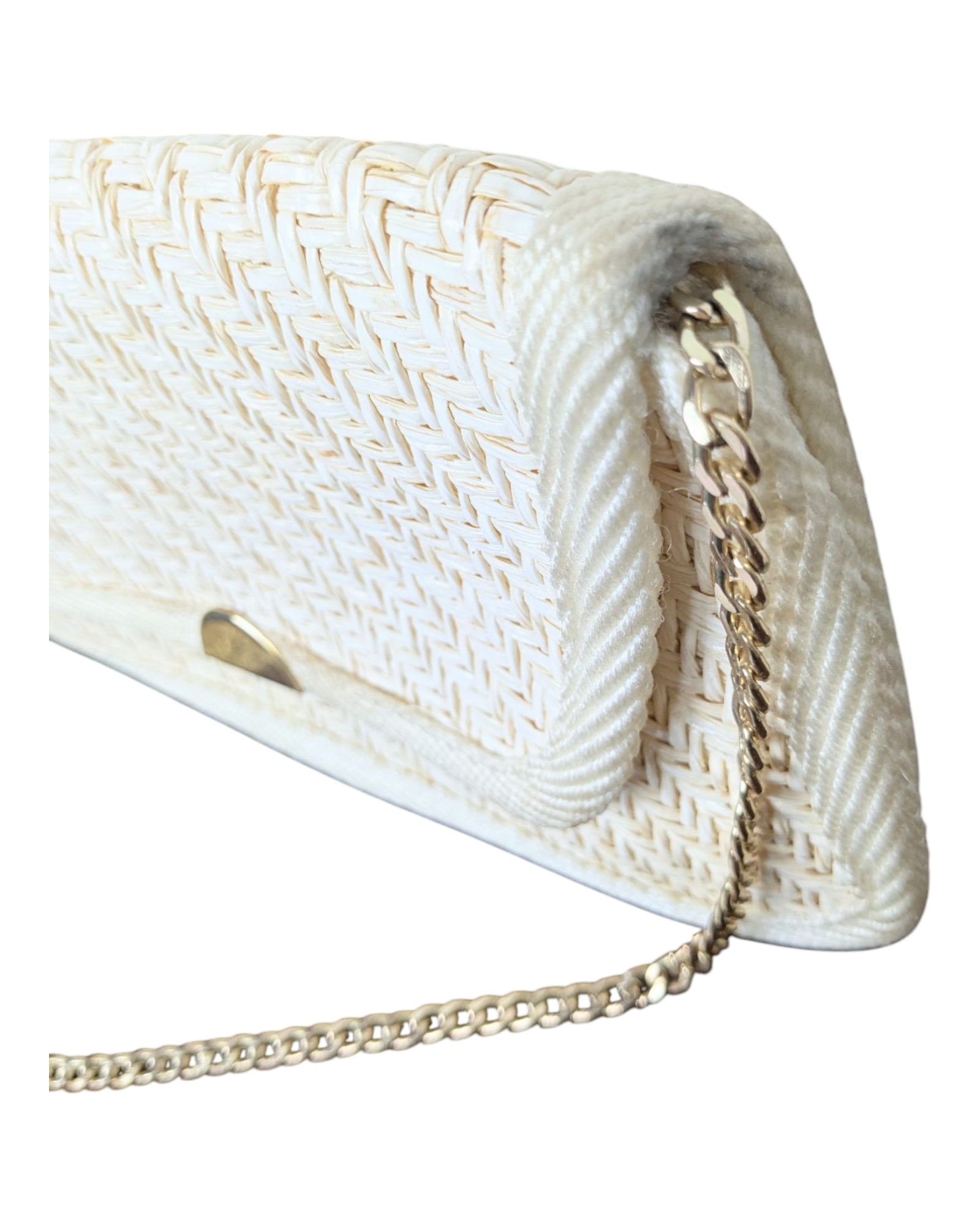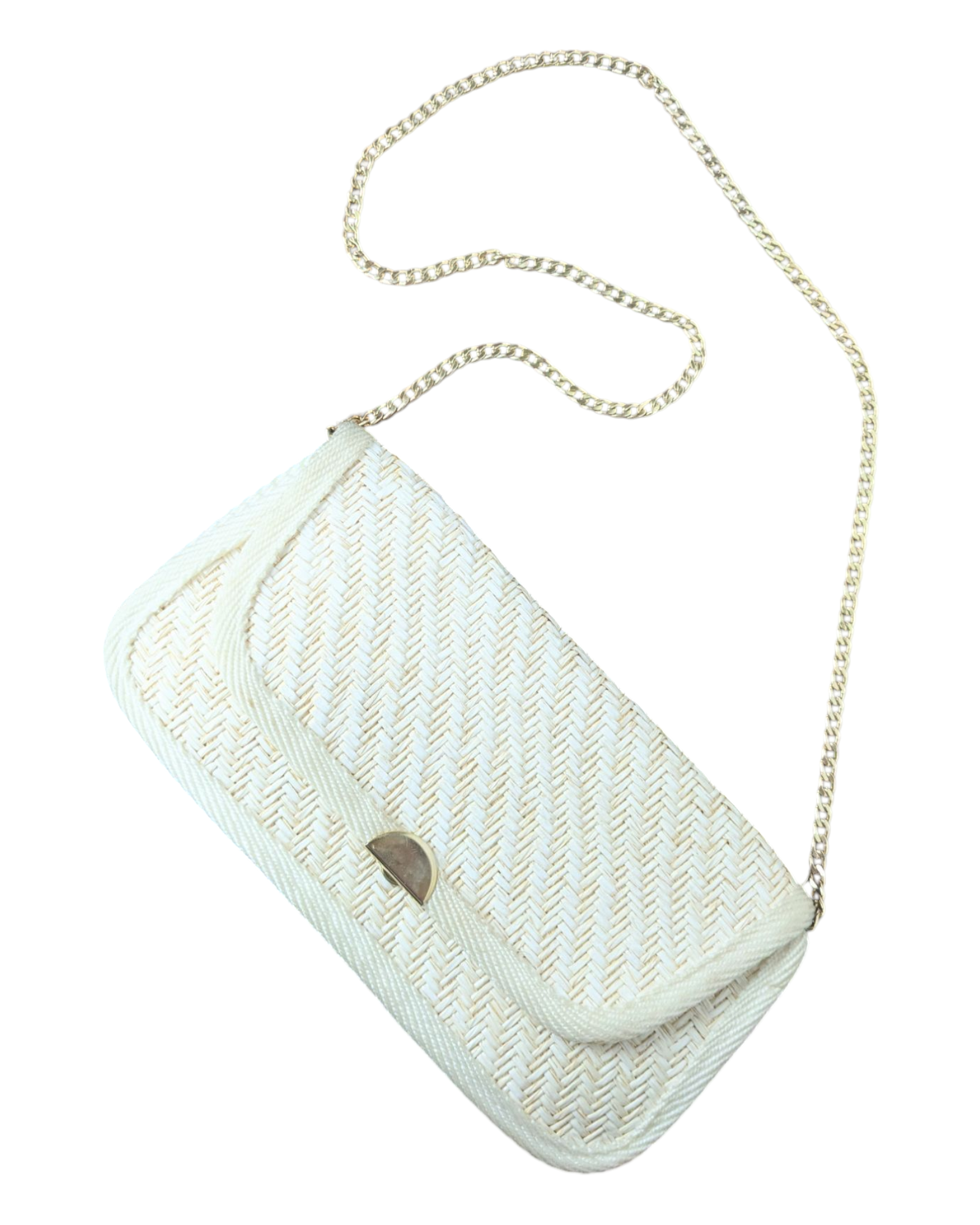 Sac en osier blanc tressé avec anse chaine dorée Vintage authentique Années 80s.