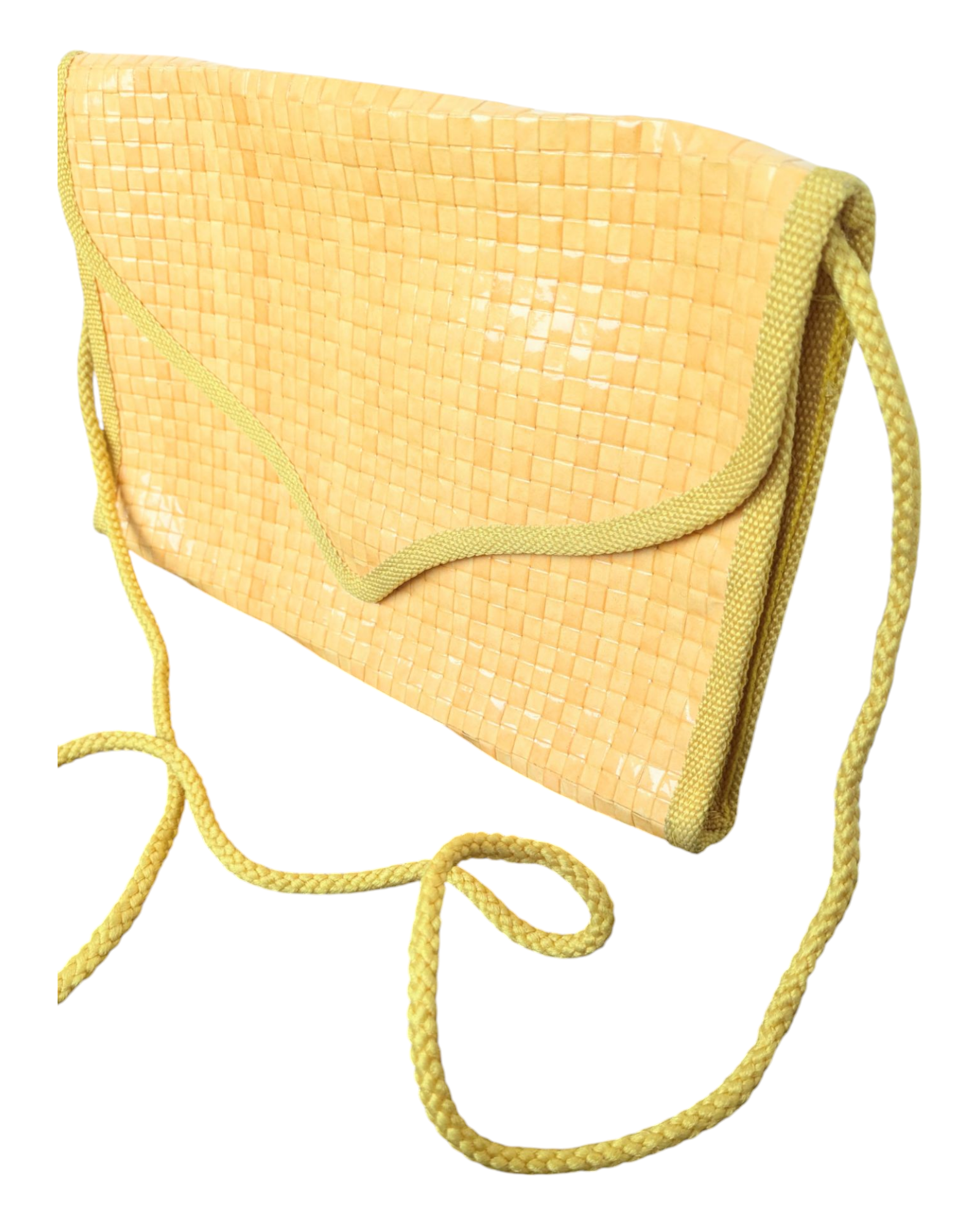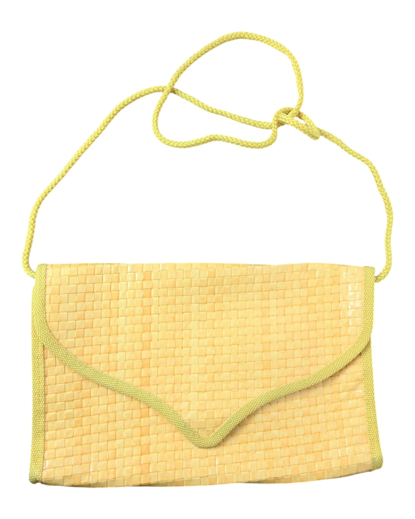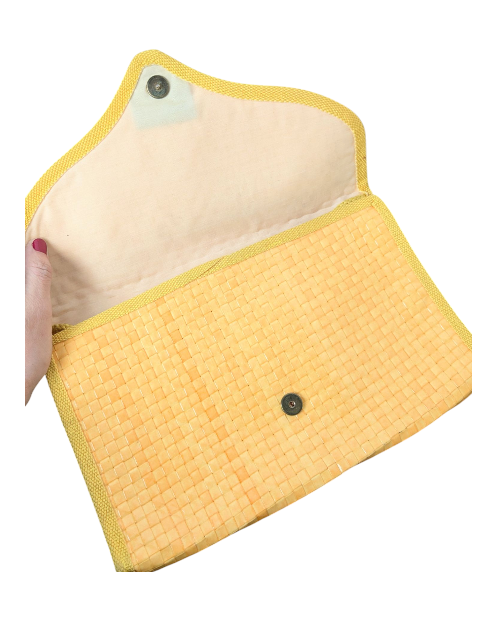 Pochette en osier jaune tressé avec anse Vintage authentique Années 80s.