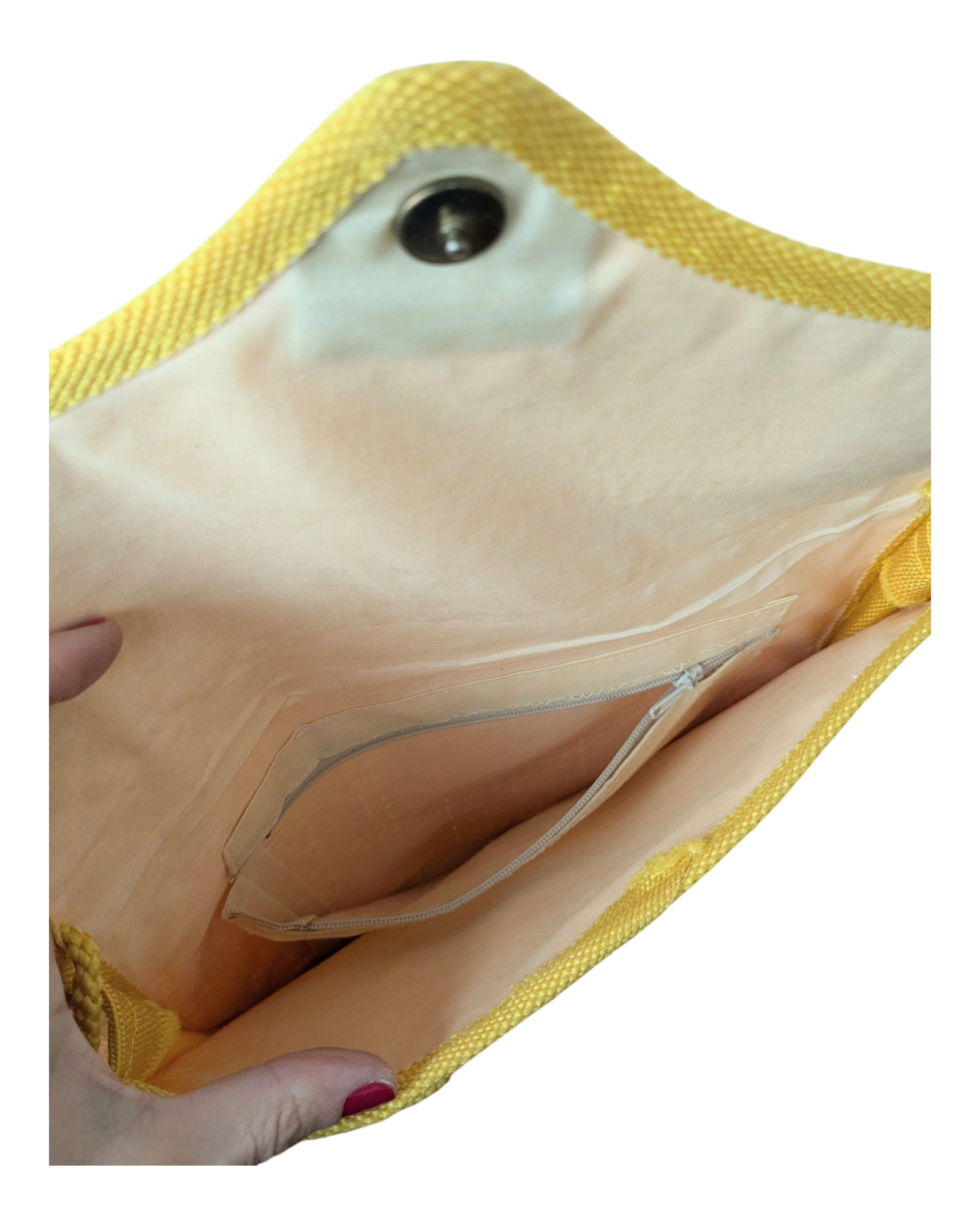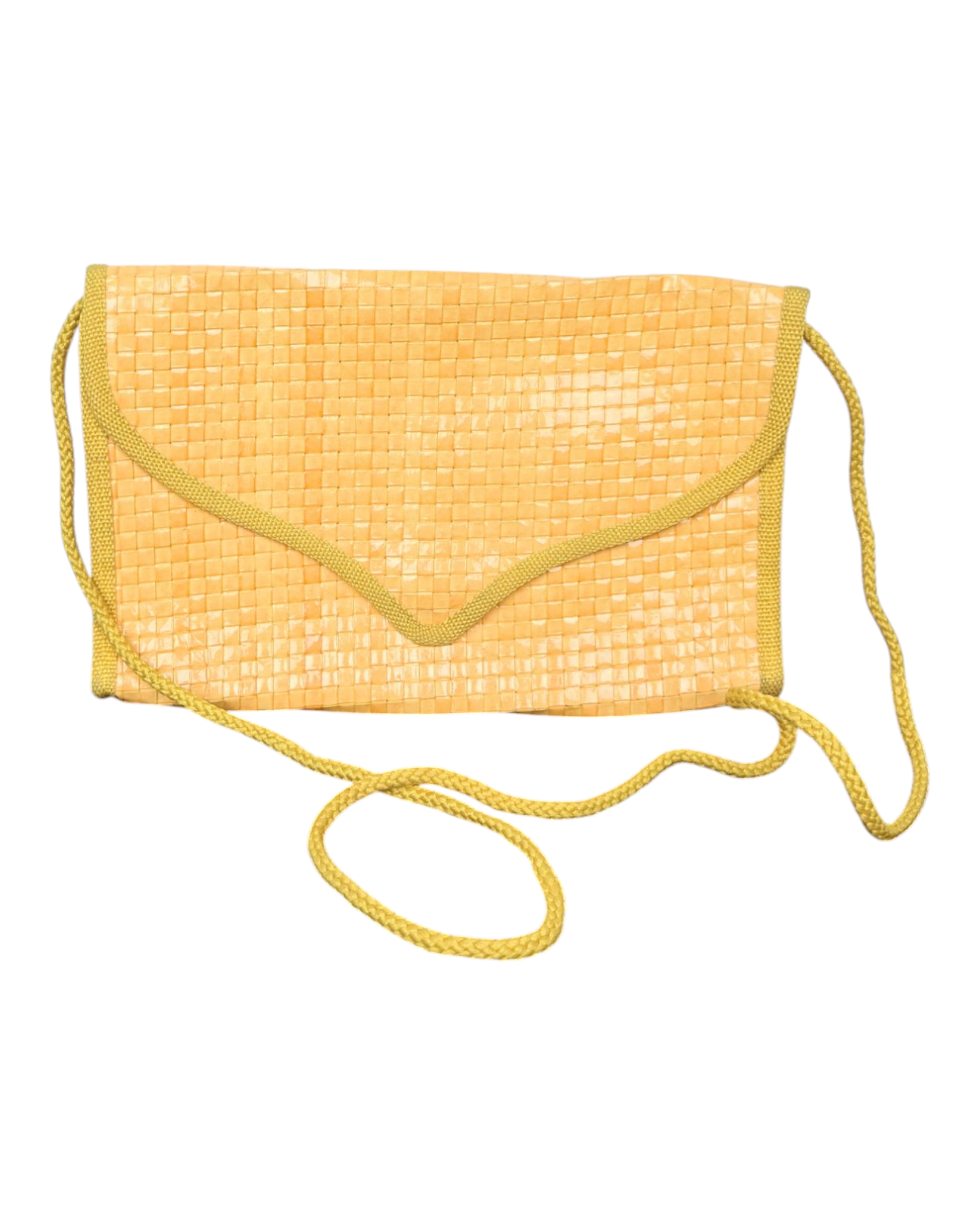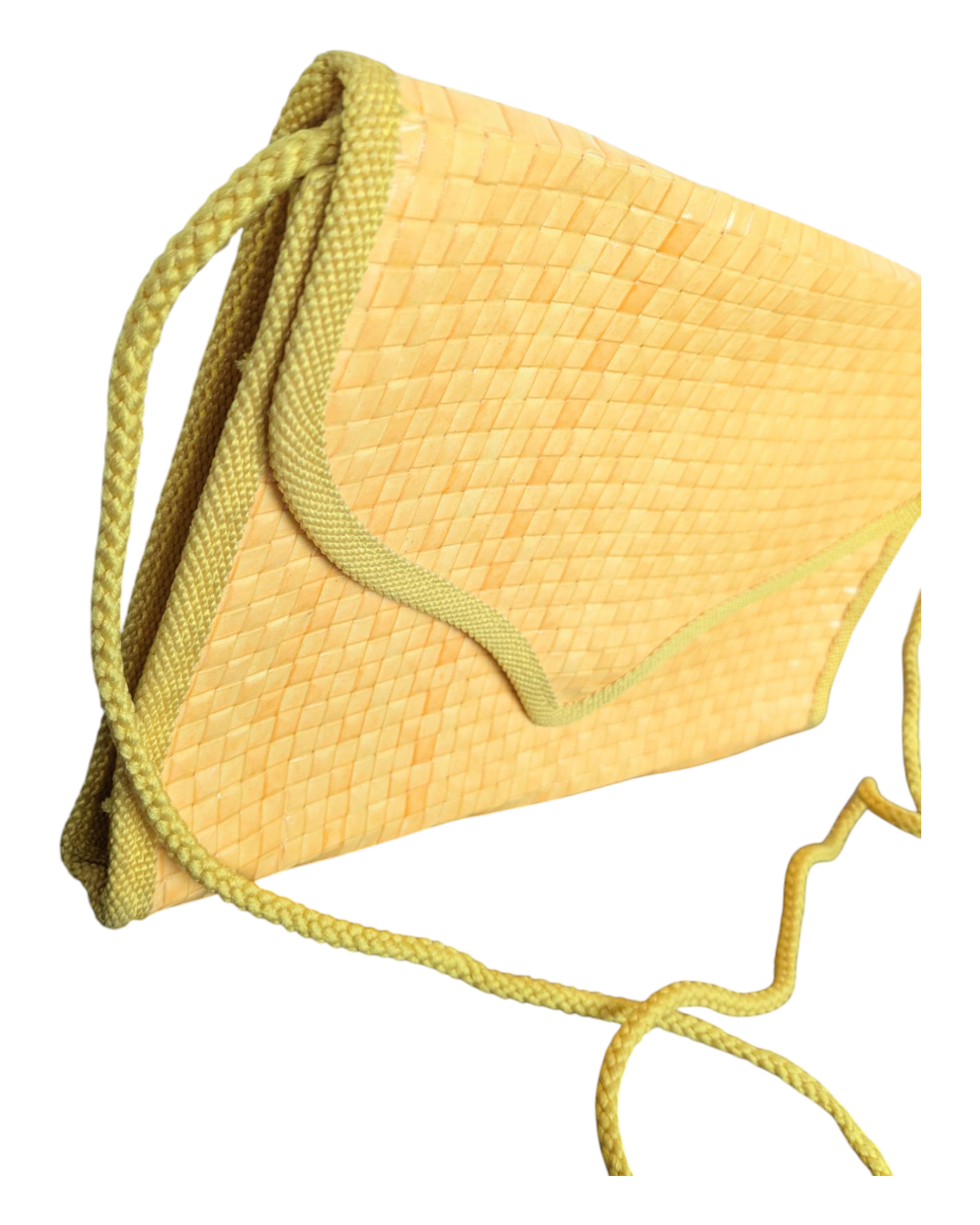 Pochette en osier jaune tressé avec anse Vintage authentique Années 80s.