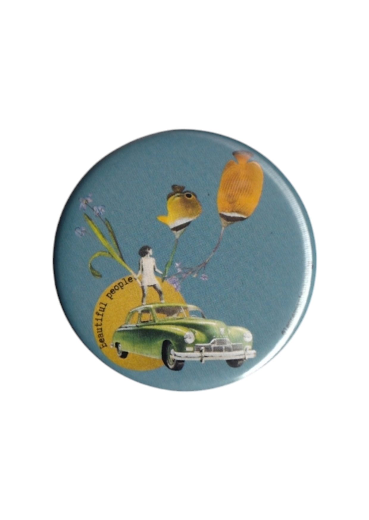 Diamètre de 5cm, impression sur papier, plastique de protection, aluminium.