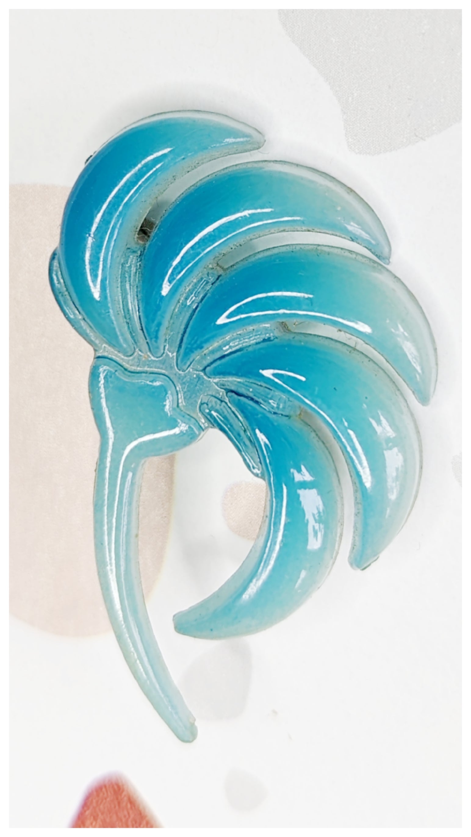 Jolie broche en forme de branche. Dégradé de couleur entre le Bleu et bleu ciel.