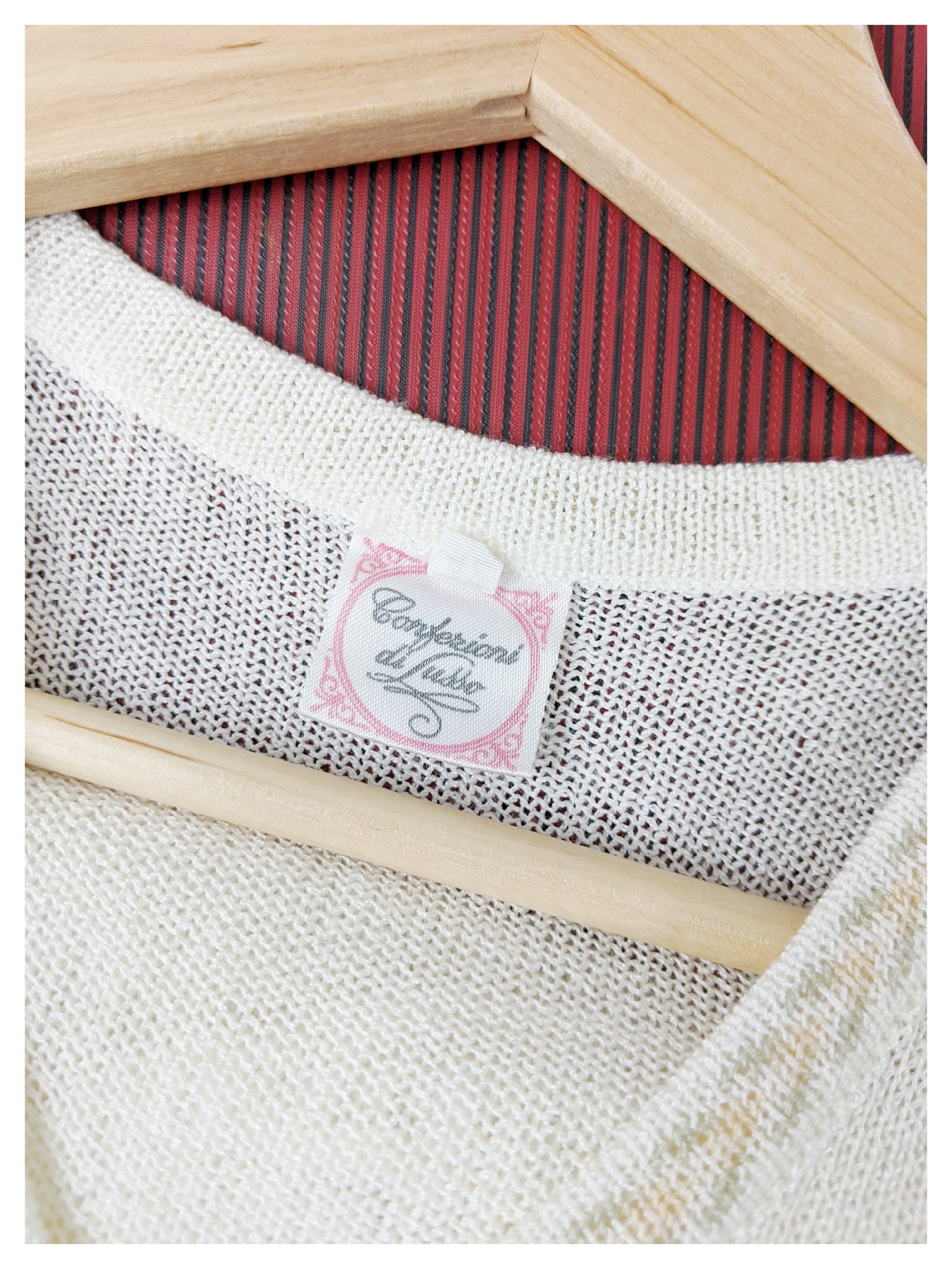 SPOILER : Provenance : cette jolie robe est neuve et n'a jamais été portée. Il provient d'un lot que j'ai acheté à Monsieur Louis. Il a tenu une belle boutique de prêt-à-porter durant 40 ans en Flandres. Vous avez encore une photo de son enseigne grâce à ses derniers sacs promotionnels ! Elle a été lavée par mes soins avant d'être mis en vente.