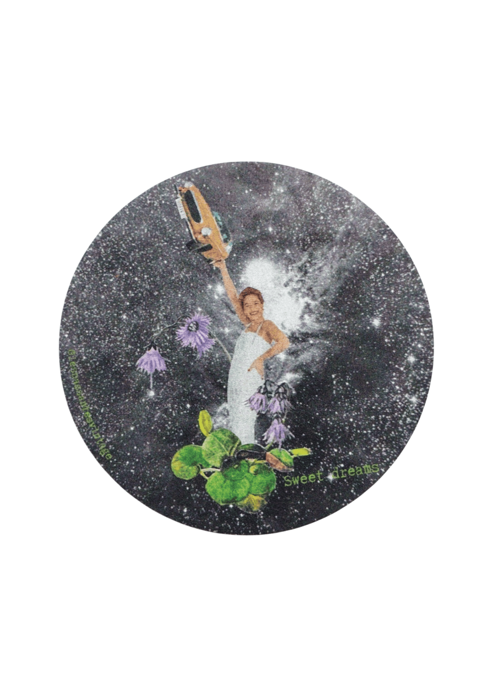 Dimension de 7cm, imprimé sur vinyle, finition mate, relief satiné.