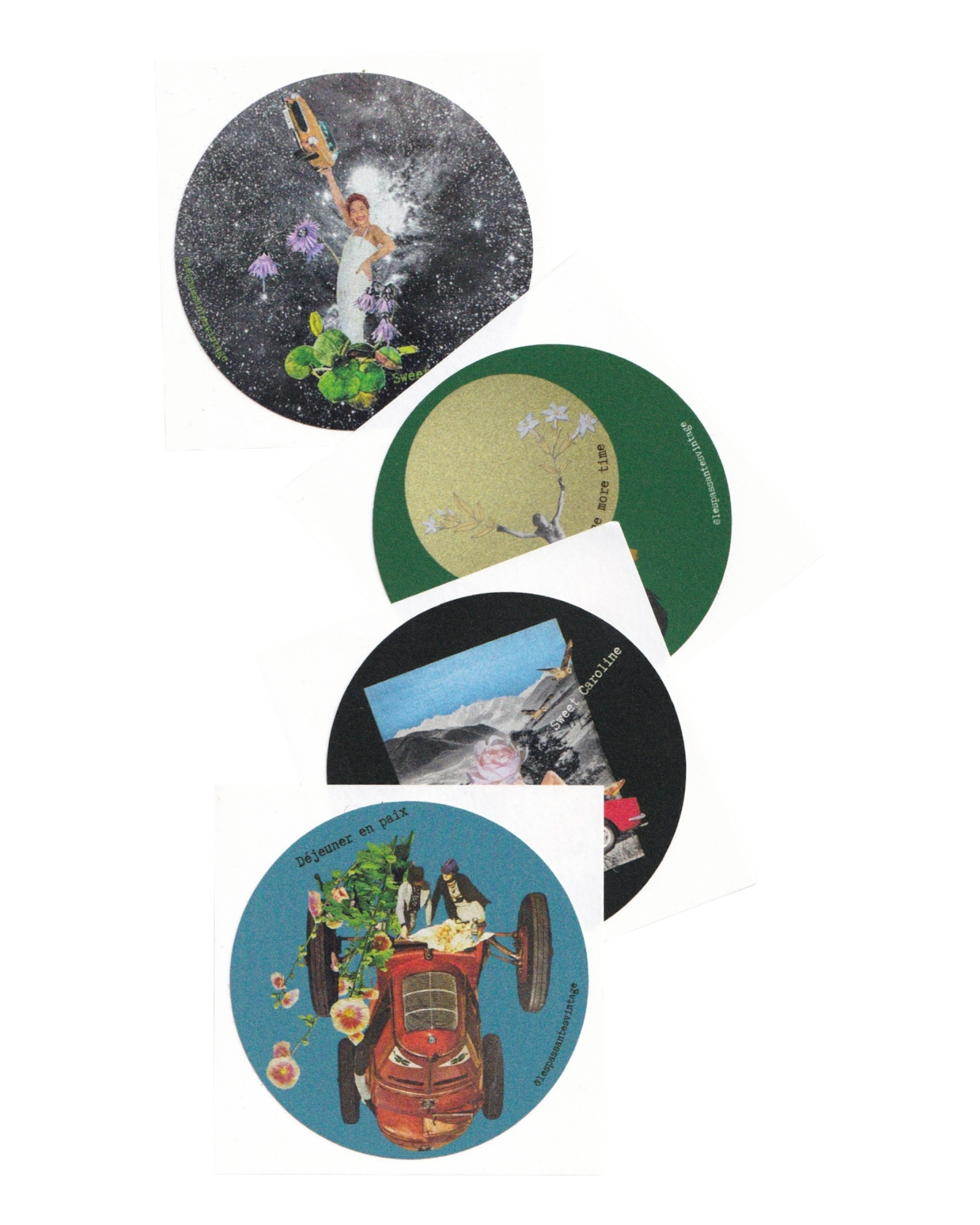 Dimension de 7cm, imprimé sur vinyle, finition mate, relief satiné.