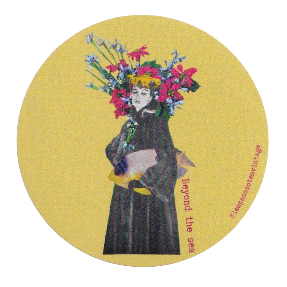 Dimension de 7cm, imprimé sur vinyle, finition mate, relief satiné.