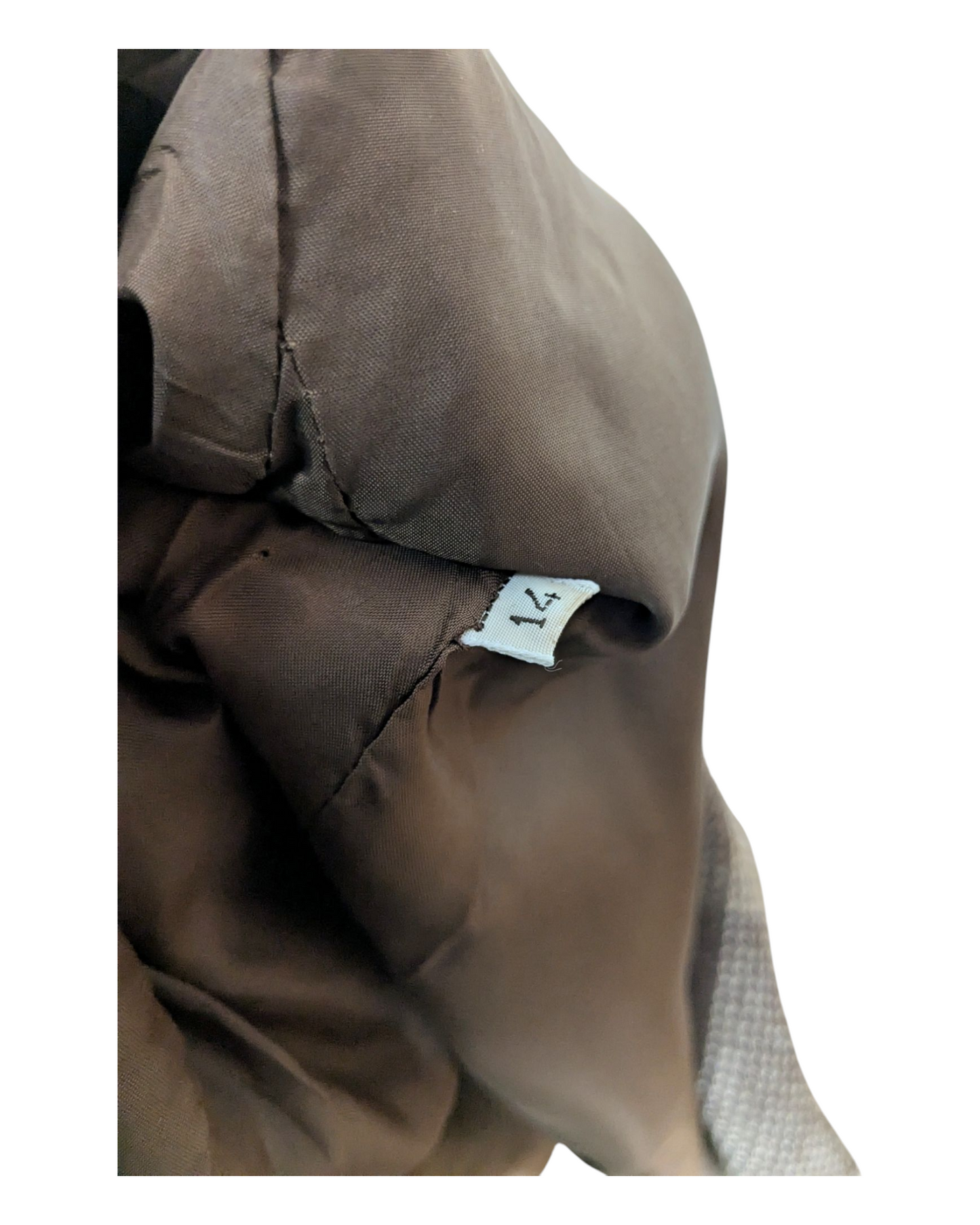 Dimensions à plat : 42 cm de carrure, 69 cm de longueur de manche, 52 cm de tour de poitrine, 52 cm de tour de taille, 70 cm de long.