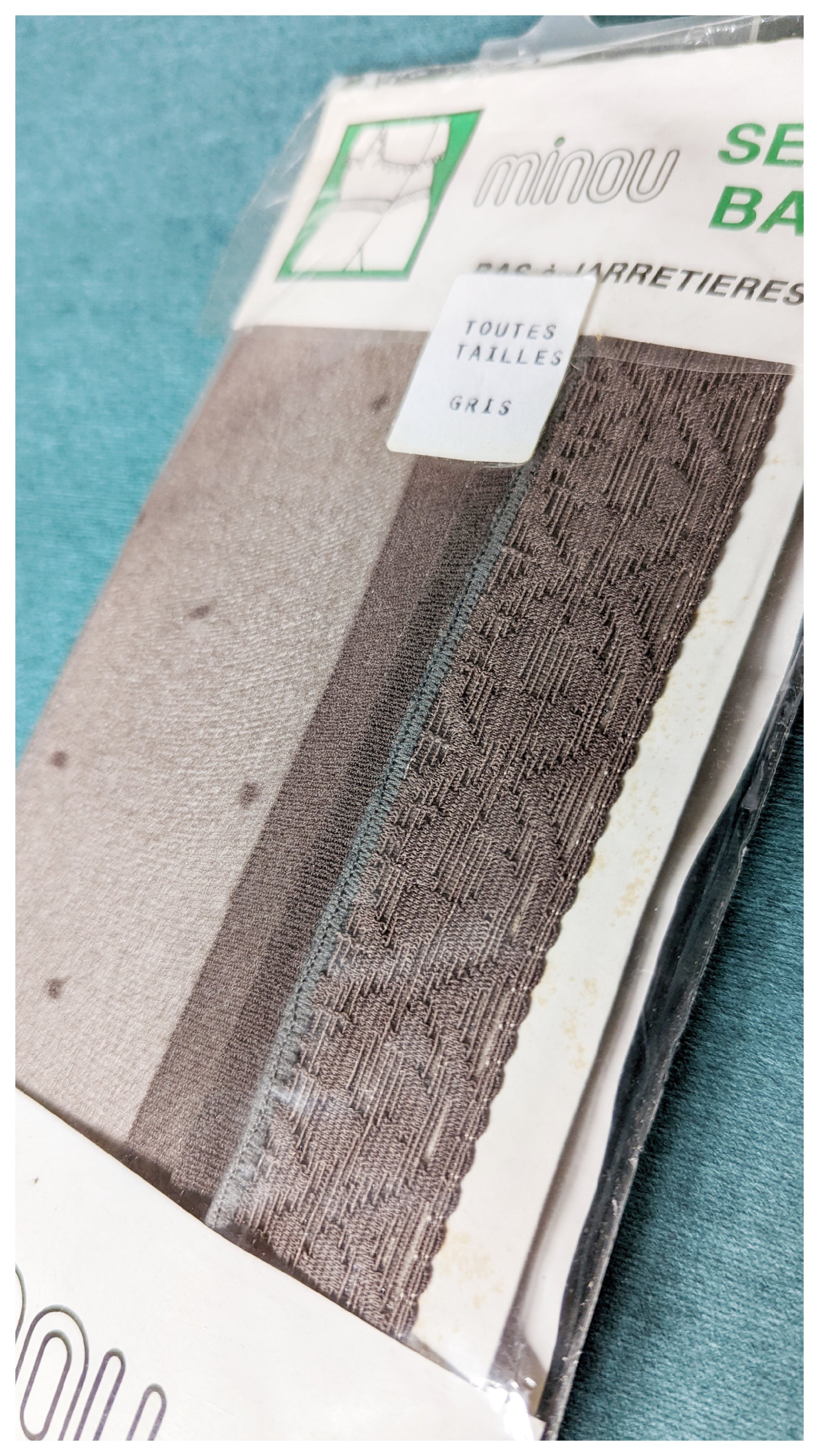 Jolie paire de bas de jarretelle Sexy bas gris à pois avec broderie élastique mi-cuisse.