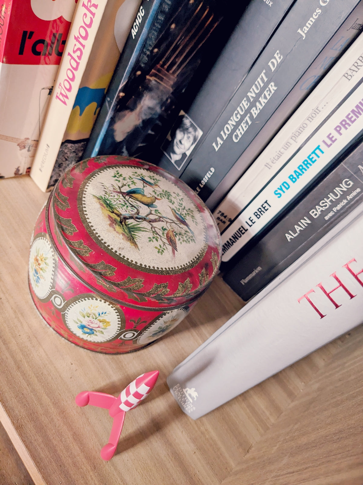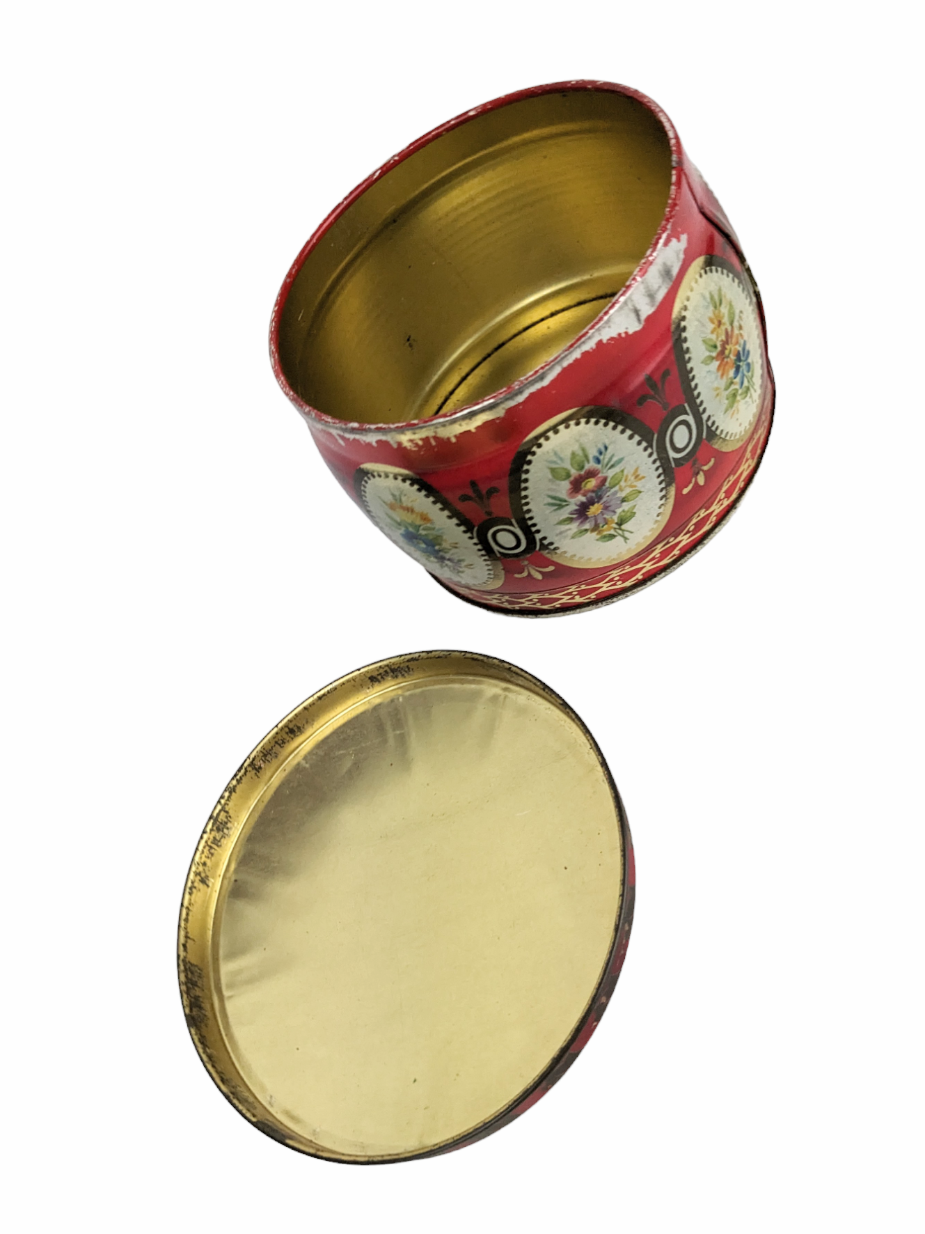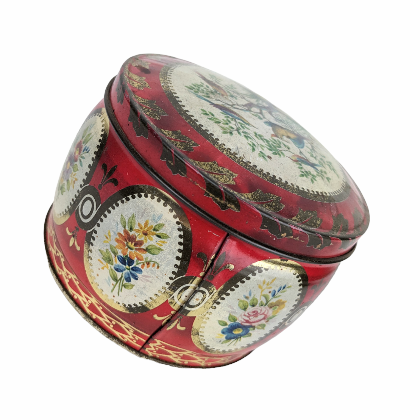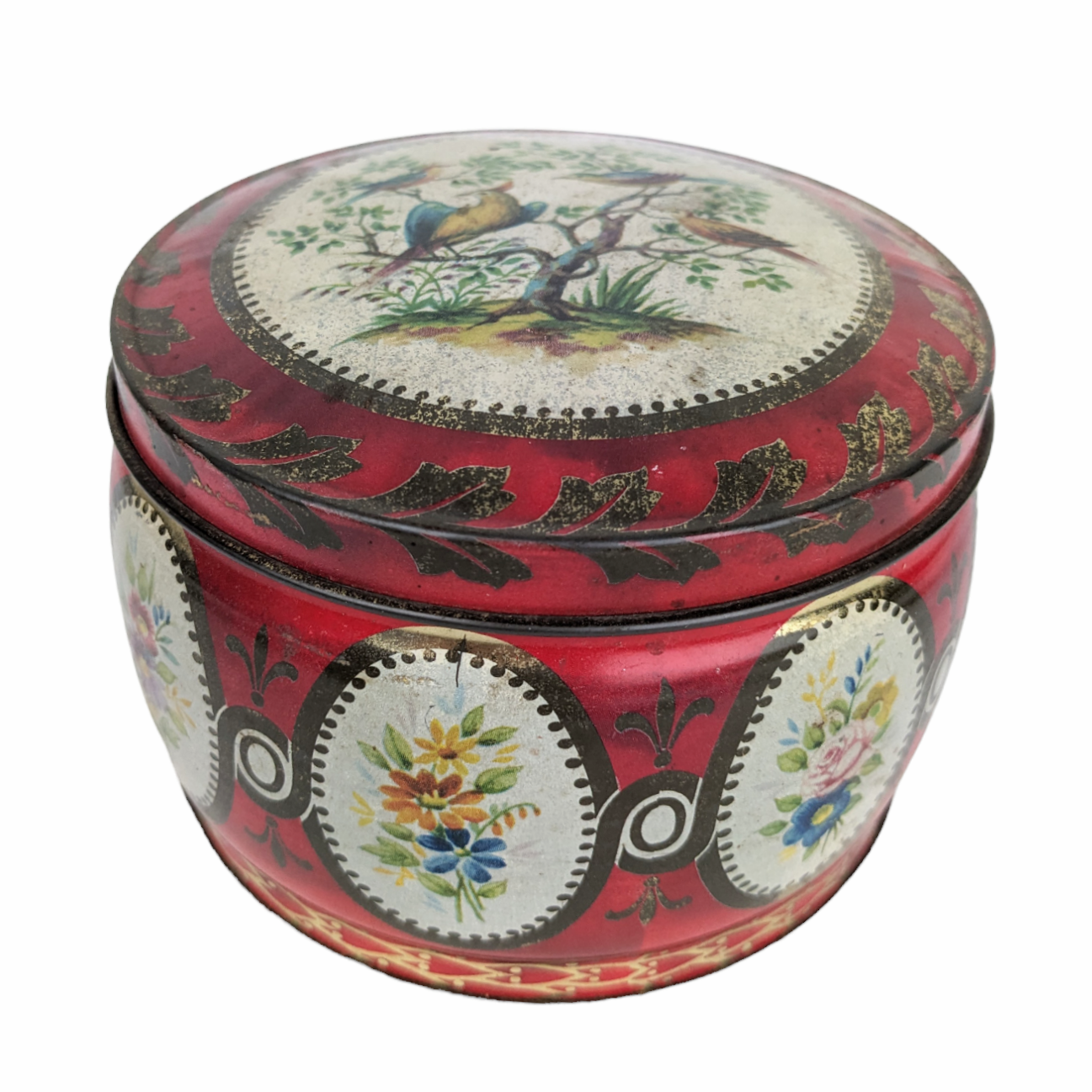 Très jolie boîte en fer en couleur. Illustration de fleurs et oiseaux. Format bonbonnière.