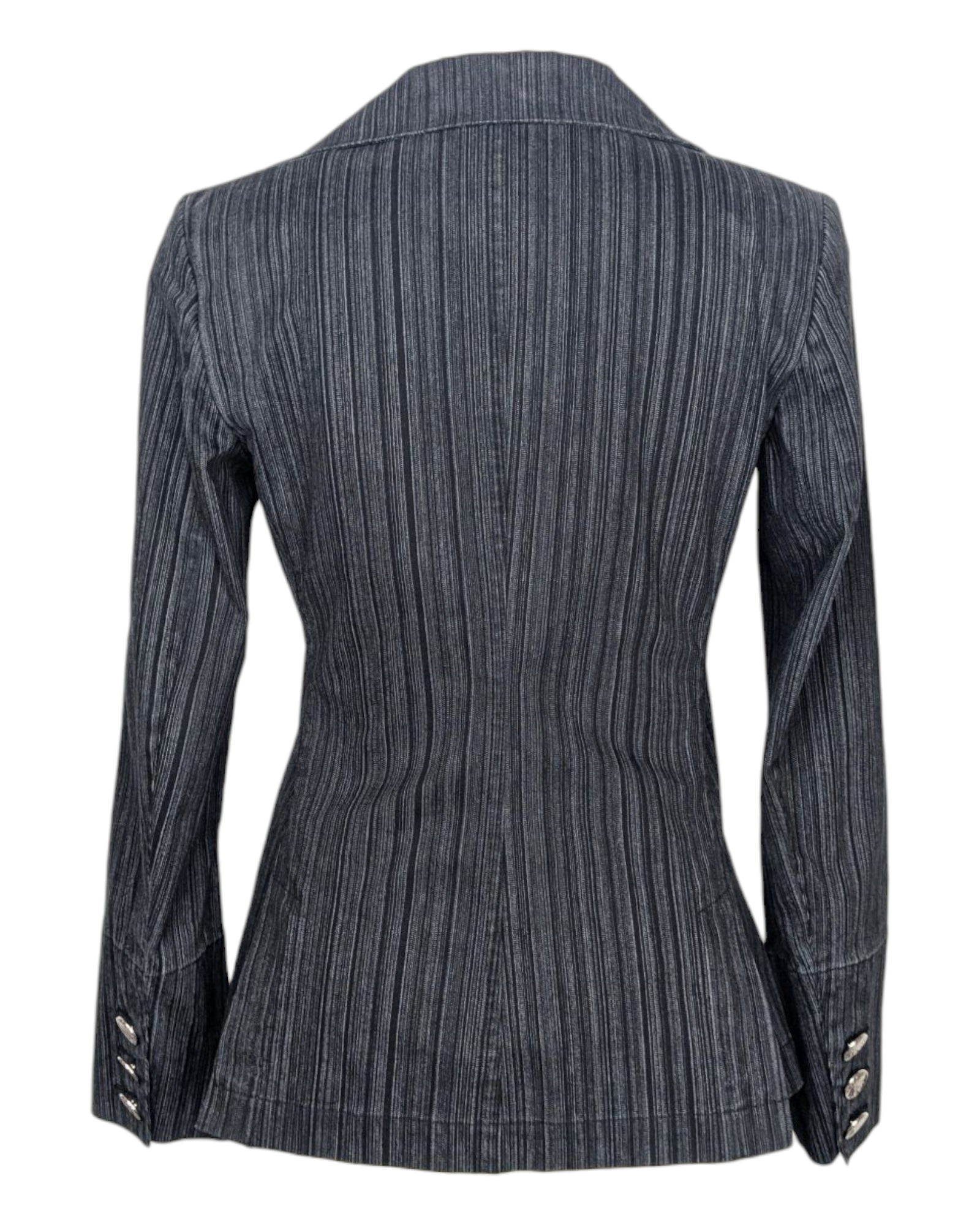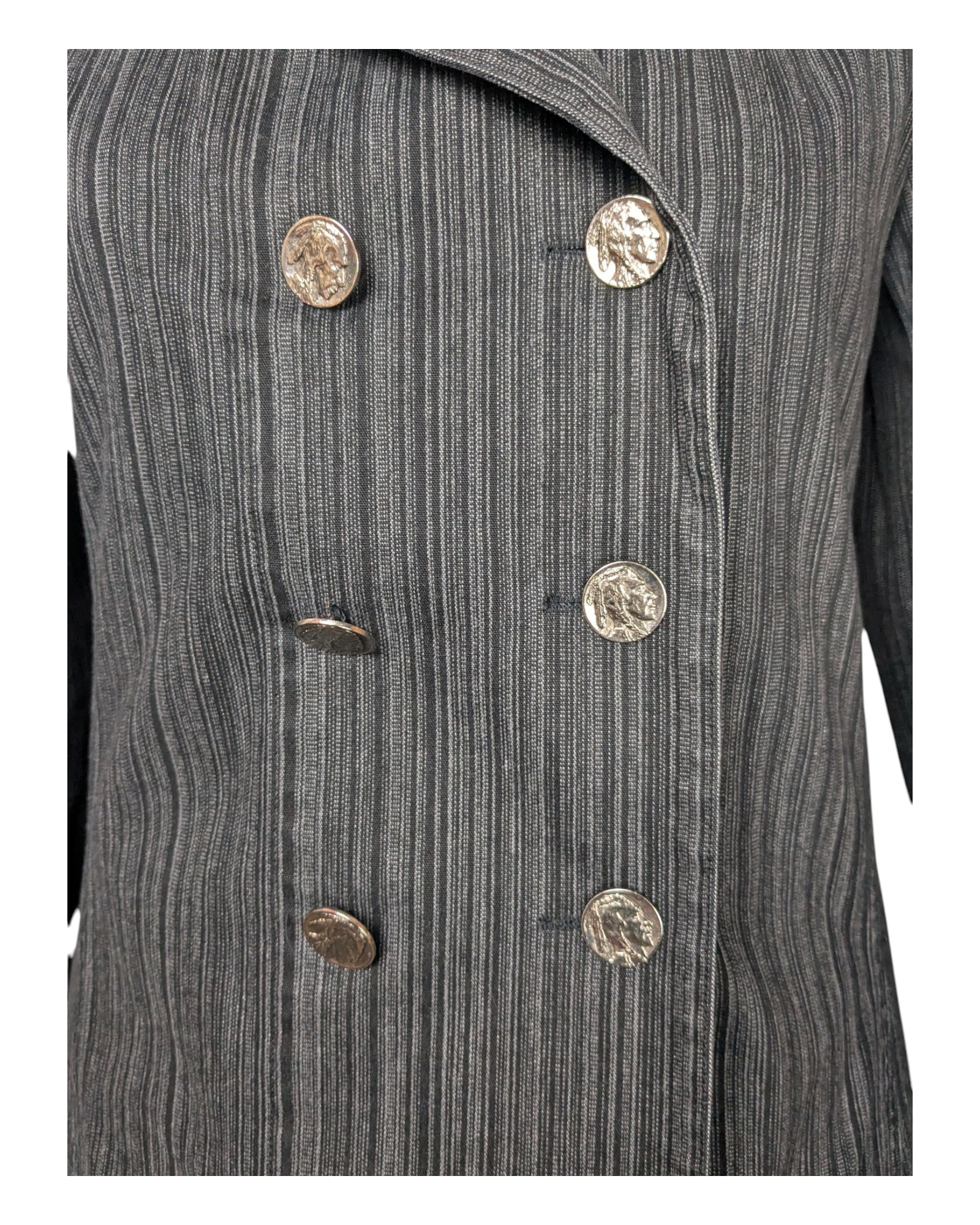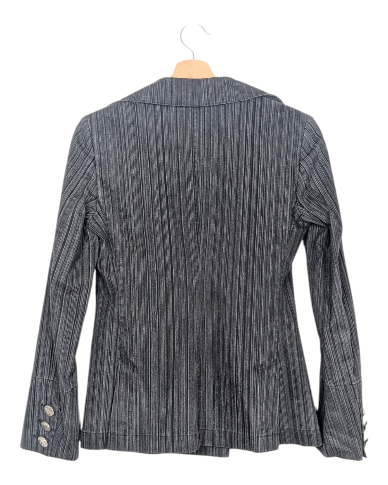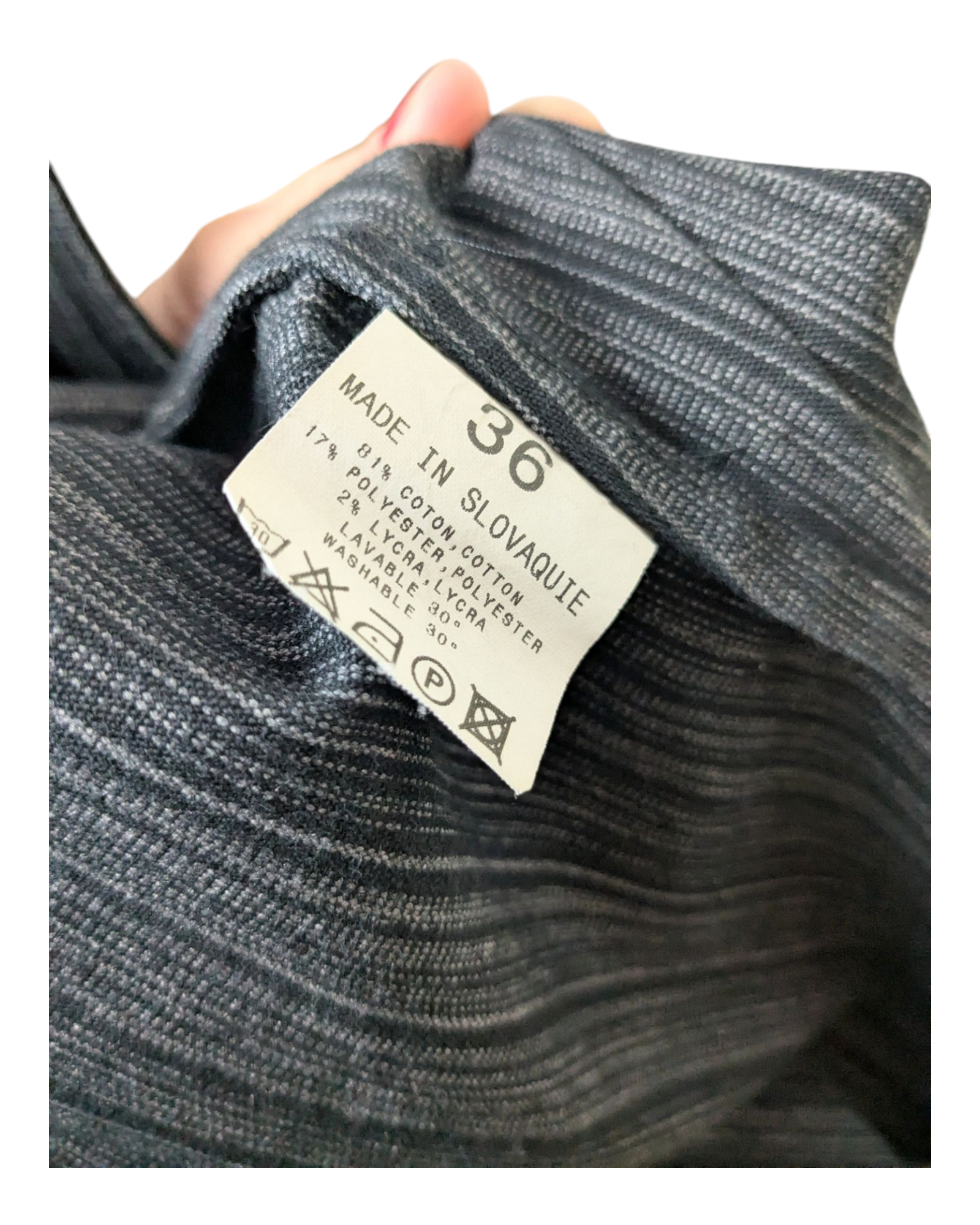 Très beau tailleur Agnès B dans les tons gris ligné. Très belles veste cintrée, et pantalon plutôt taille haute.